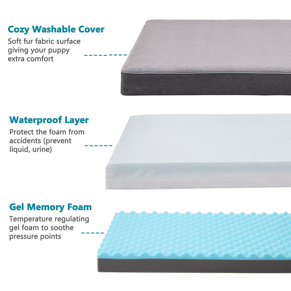 Gohoo Pet Orthopedic Memory Foam Dog Bed, Cooling Dog Beds Waterproof Pet Bed For Crate With Removable Washable Cover, L(35Inch,