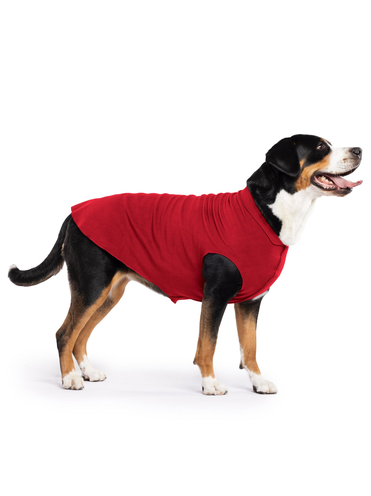 Gold Paw Stretch Fleece Dog Coat, Stretchy Pet Sweater, Machine Washable Pullover For Winter And Fall, Red, 28