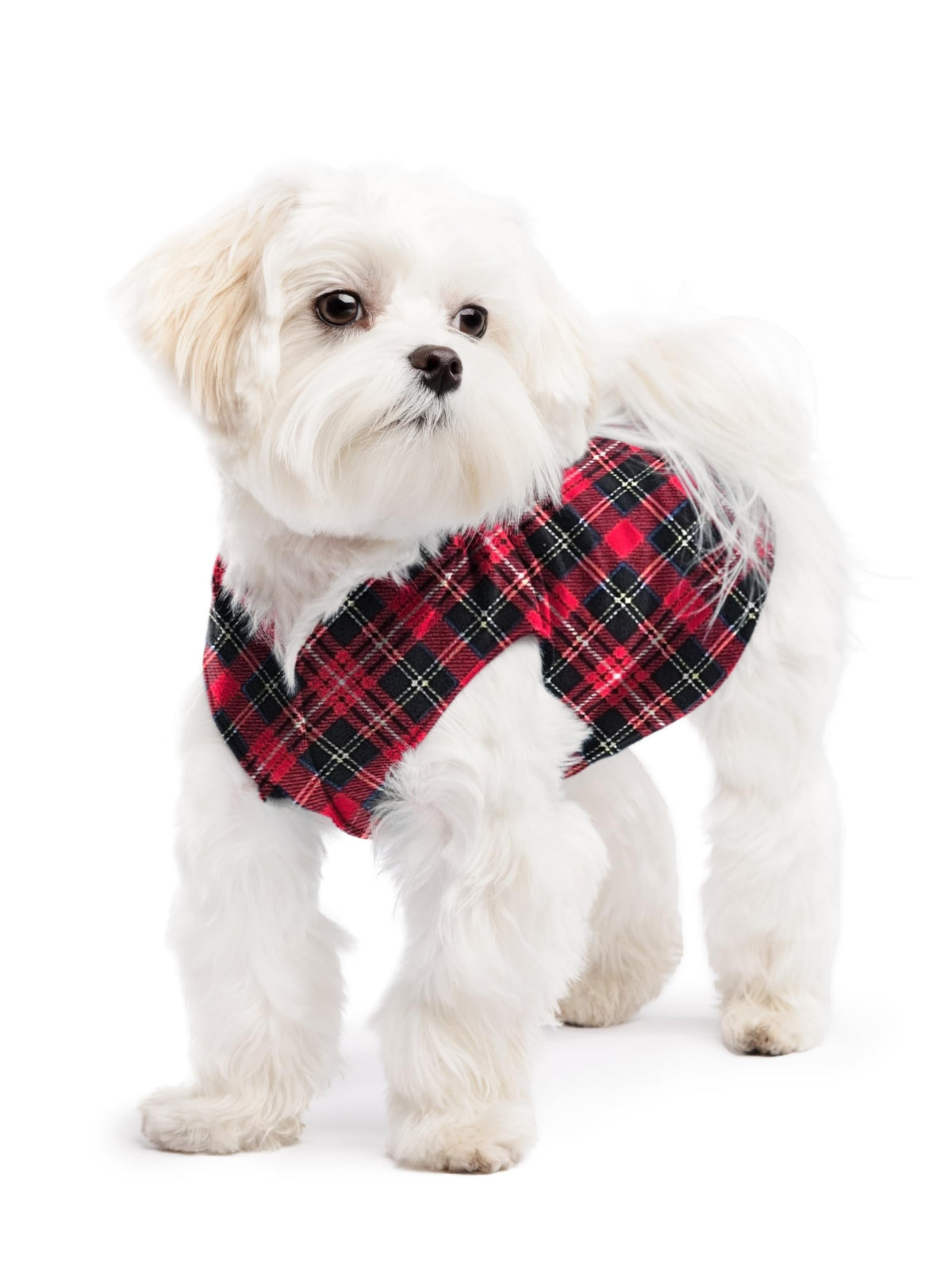 Gold Paw Stretch Fleece Dog Coat, Stretchy Pet Sweater, Machine Washable Pullover For Winter And Fall, Red Classic Plaid, 8