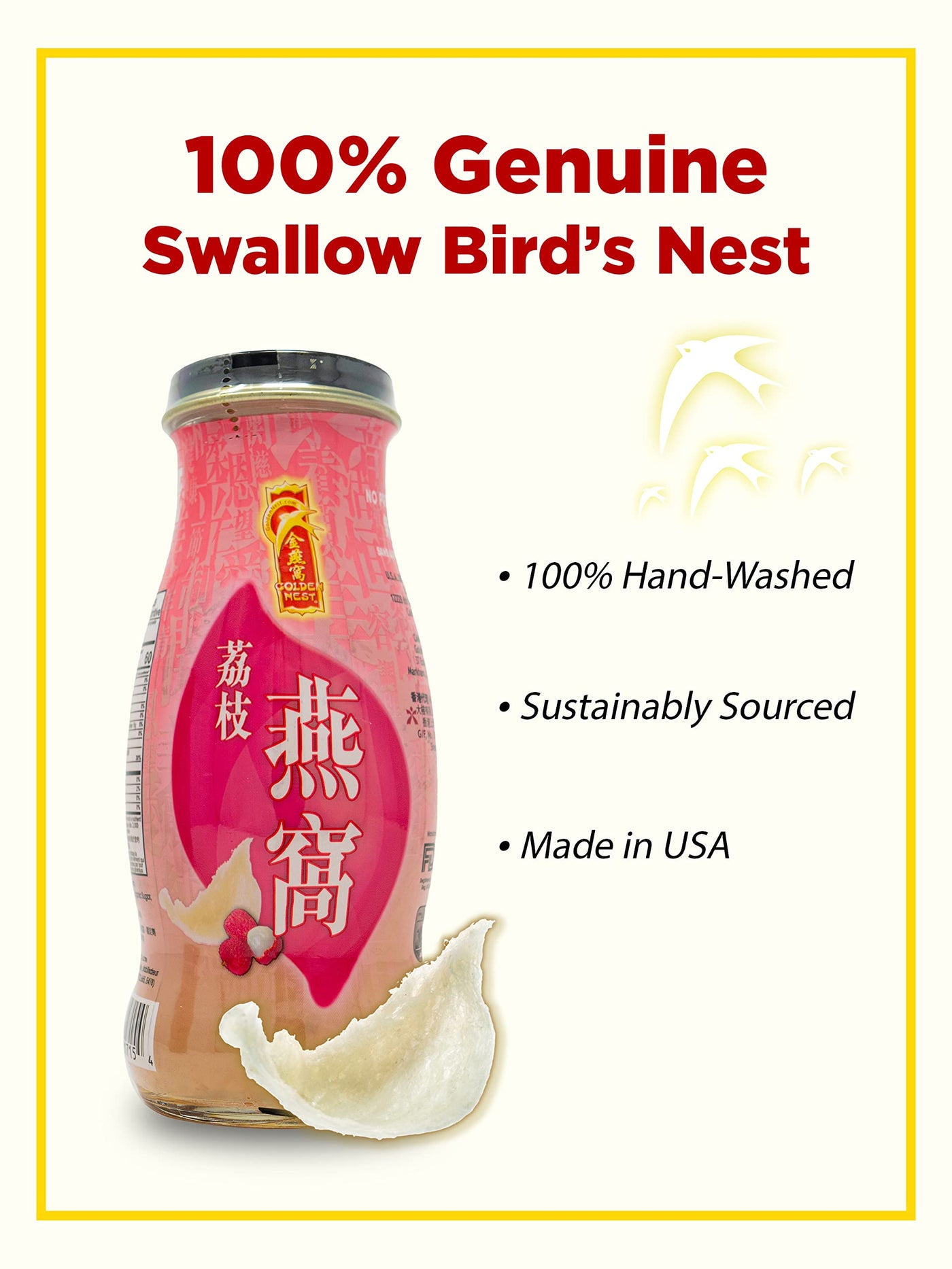 Golden Nest Premium Bird Nest Drink, Swallow Bird Nest 100% Natural - Made in USA, (??) 12 bottles x 240 ml (8oz) (Lychee)