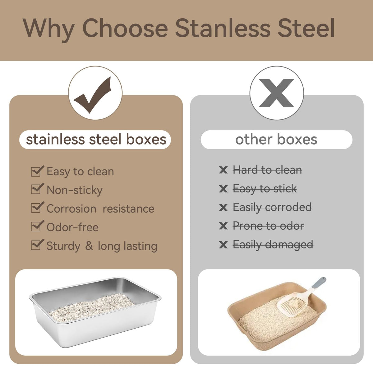 Discover The Ultimate Solution For Your Feline Friend'S Comfort And Your Peace Of Mind - The Goldenkey Extra Large Stainless Steel Litter Box. Crafted From High-Quality, Durable Stainless Steel, This Litter Box Combines Style, Functionality, And Durability Like No Other. Say Goodbye To Flimsy Plastic Alternatives; The Goldenkey Litter Box Is Built To Last, Resisting Scratches And Rust For Years Of Reliable Use. Its Extra-Large Size Ensures Even The Biggest Breed Cats Have Ample Room To Move Around, Making It Perfect For Households With Multiple Cats Or Larger Felines. Cleaning Up After Your Furry Buddy Becomes A Breeze With This Smooth Surfaced, Nonstick Design. Waste Removal Is Efficient And Mess-Free, Ensuring Quick Maintenance That Stays Ahead Of Odor Troubles. The Easy-To-Clean Feature Means Less Time Scrubbing And More Quality Moments With Your Cat. Our Litter Box Boasts A Sleek, Round Shape That Not Only Adds A Modern Touch To Your Home But Also Facilitates Effortless Scooping And Sifting, Much Like A Premium Stainless Steel Sifting Litter Box. It'S A Smart Choice For Those Who Appreciate A Blend Of Practicality And Aesthetics. Worried About Unpleasant Odors? The Goldenkey Litter Box'S Superior Construction Helps Contain Odors, Keeping Your Home Fresh. Whether You'Re Looking For An Enclosed Stainless Steel Litter Box For Added Privacy Or Simply Want A Spacious, Open Design, This Box Strikes The Perfect Balance. Don'T Settle For Less When It Comes To Your Cat'S Necessities. Upgrade To The Goldenkey Stainless Steel Litter Box And Experience The Difference That A Truly Premium, Odor-Proof, And Long-Lasting Metal Pan Can Make. It'S Not Just Another Litter Box; It'S A Statement Of Love For Your Pet And Your Home. Find Out Why Pet Owners Are Raving About This As One Of The Best Litter Boxes Available. Embrace The Elegance And Practicality Of The Goldenkey Stainless Steel Litter Box Today!
