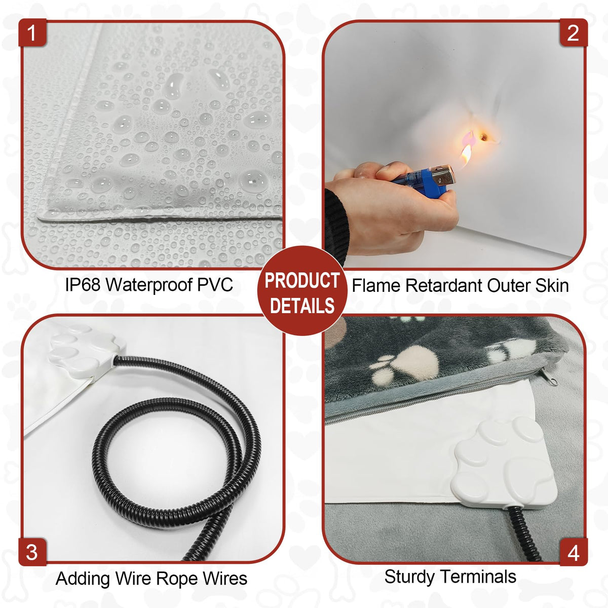 Golopet Cat Heating Pad - 18X18 Inch Waterproof Heated Cat Bed With Smart Thermostat Switch And Plush Fabric Cover