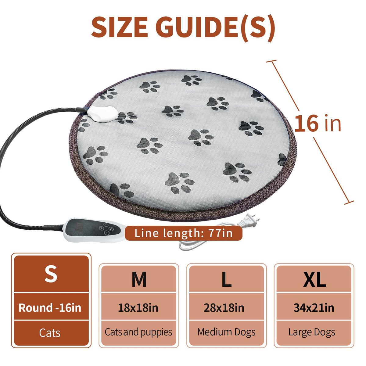 Upgraded Configuration: Diameter 16 inches Round Heating Pad for Cats (for Newborn Kittens and Puppies Adult Cats) + Smart temperature controller with automatic shut-off. Reinforced interface + wire rope for more safety.
