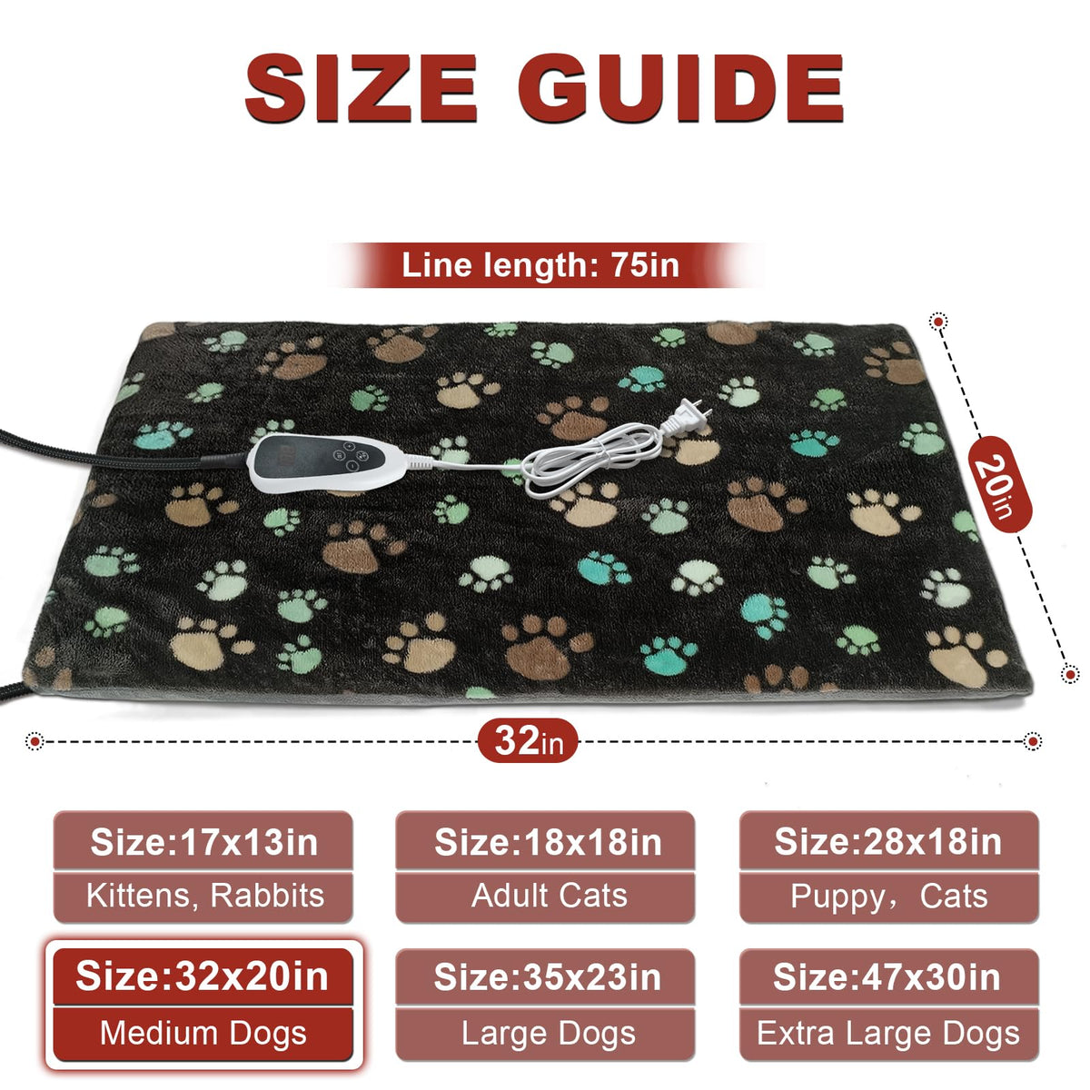 Golopet Dog Heating Pad 32X20In Waterproof Pet Heating Pad For Dogs Smart Thermostat Switch, Whelping Supplies Heated Dog Bed,Ad