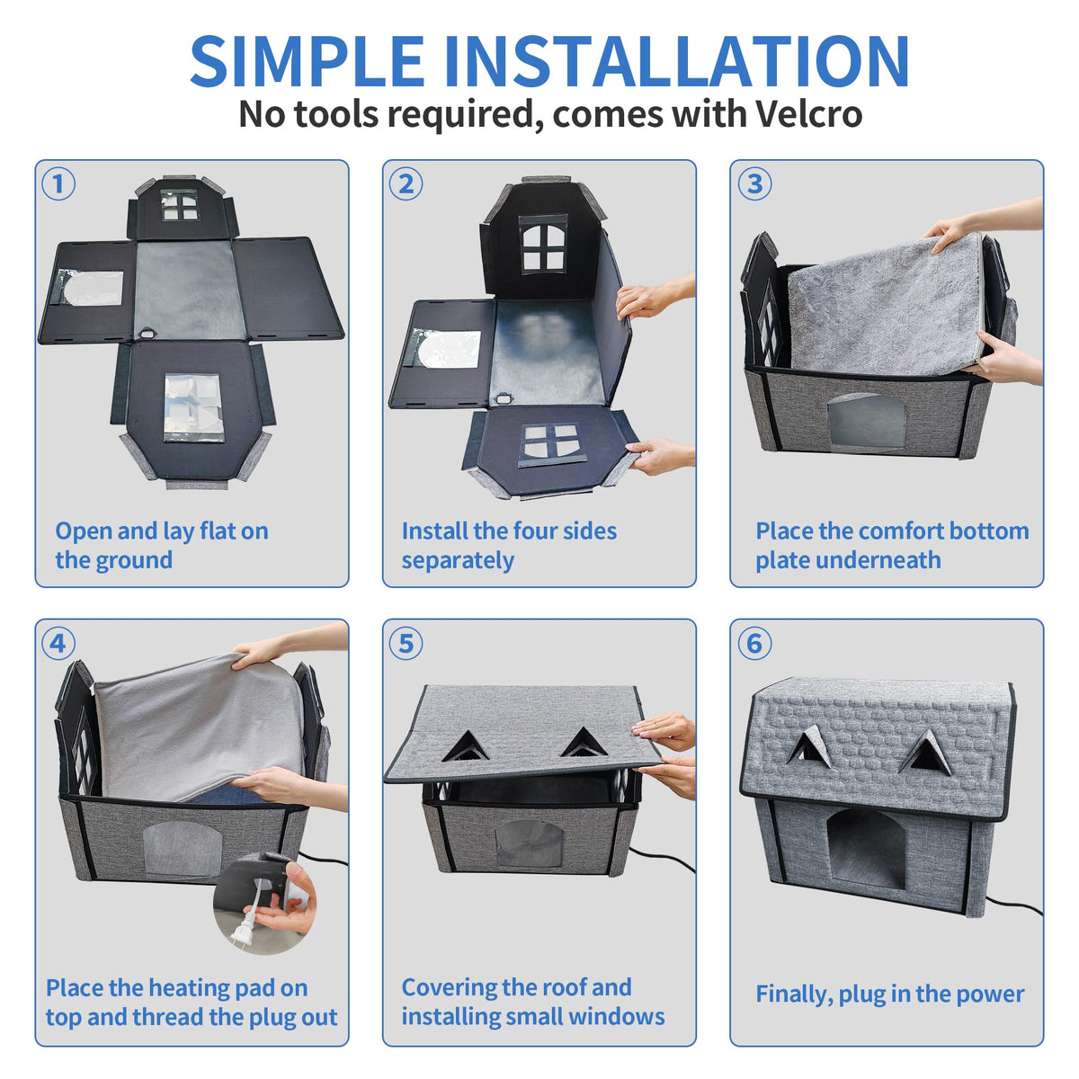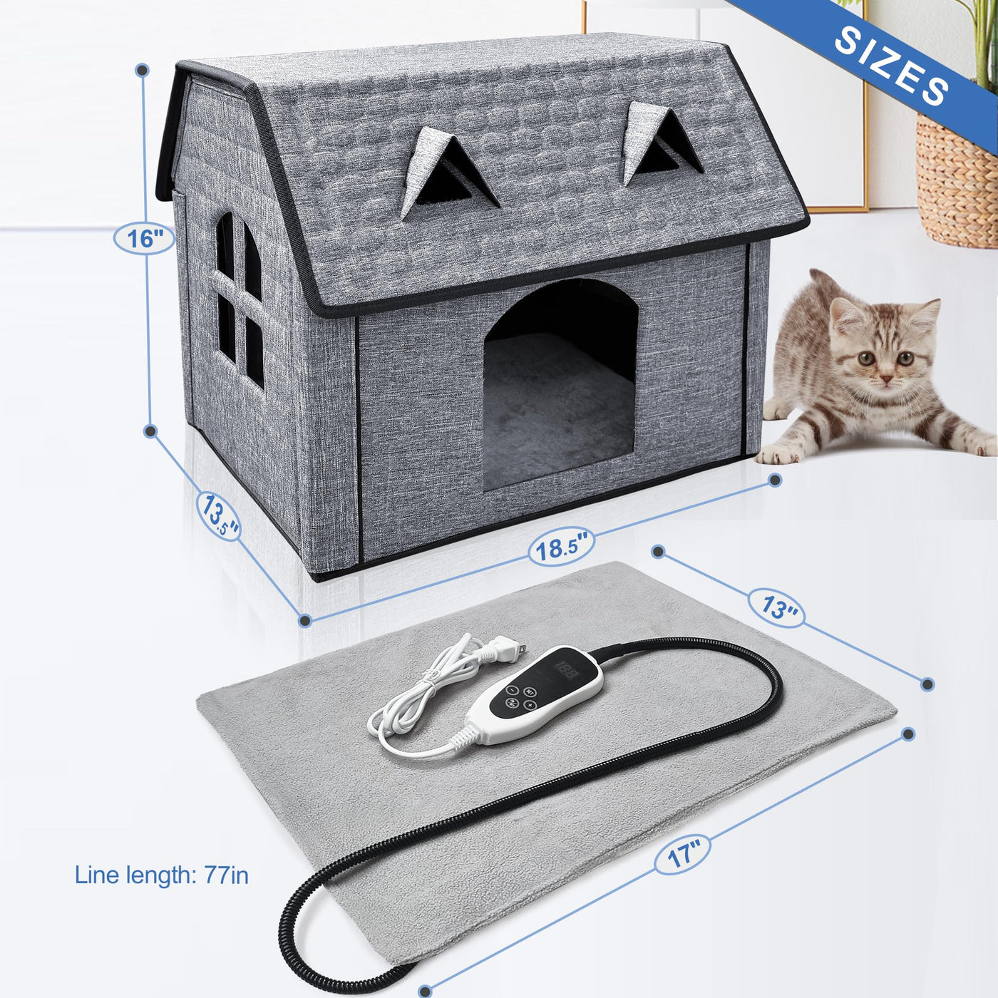 Golopet Heated Cat House With Pet Heating Pads, Intelligent Thermostat Cotroller, Cat Heating Shelter For Indoor Outdoor Kitty,