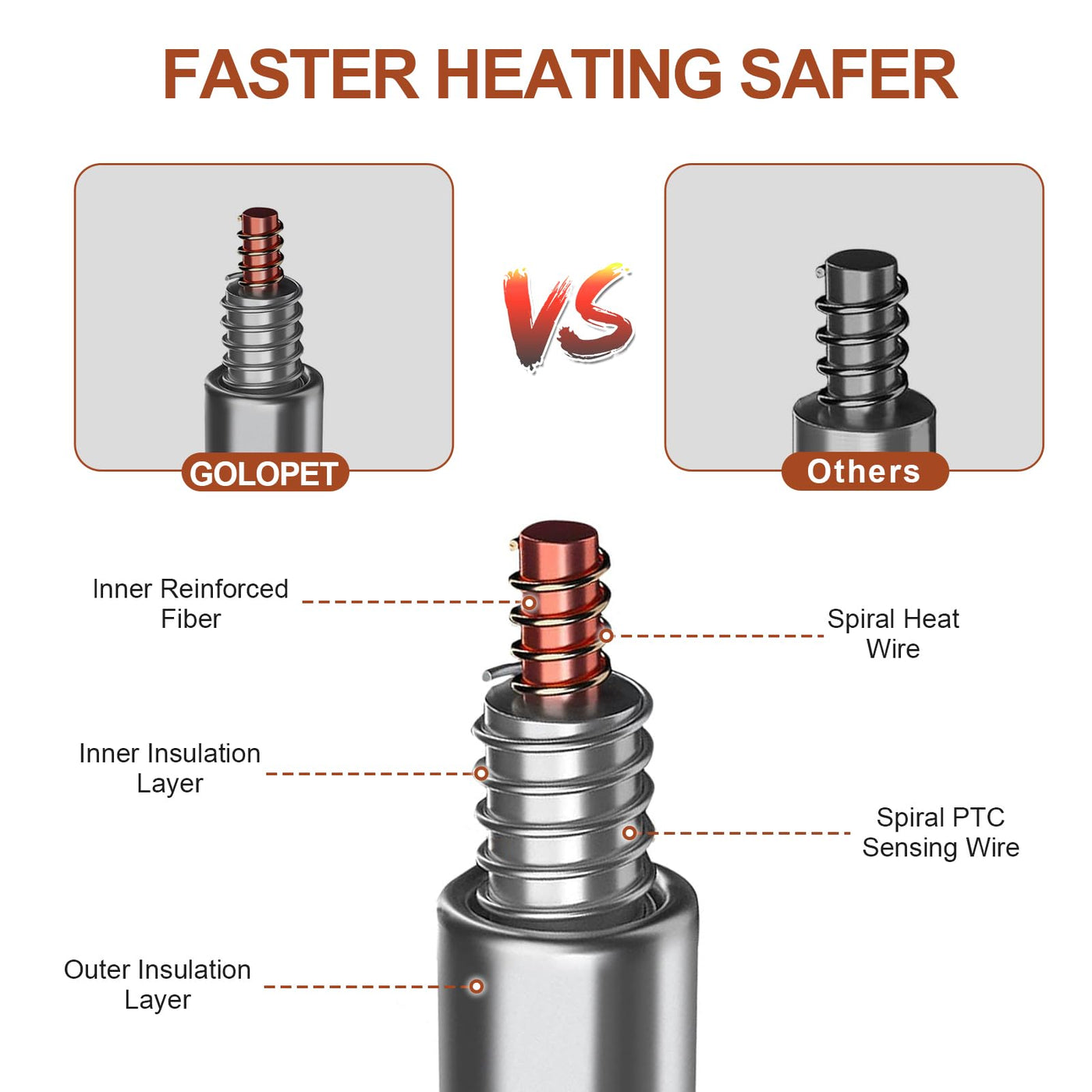 Q: Is the heating pad waterproof and safe for my pet?A: Yes, the GOLOPET Heating Pad is made from high-strength polyester fabric with a PVC inner layer, preventing any water seepage. It also features reinforced interfaces and a wire rope for added safety during use.