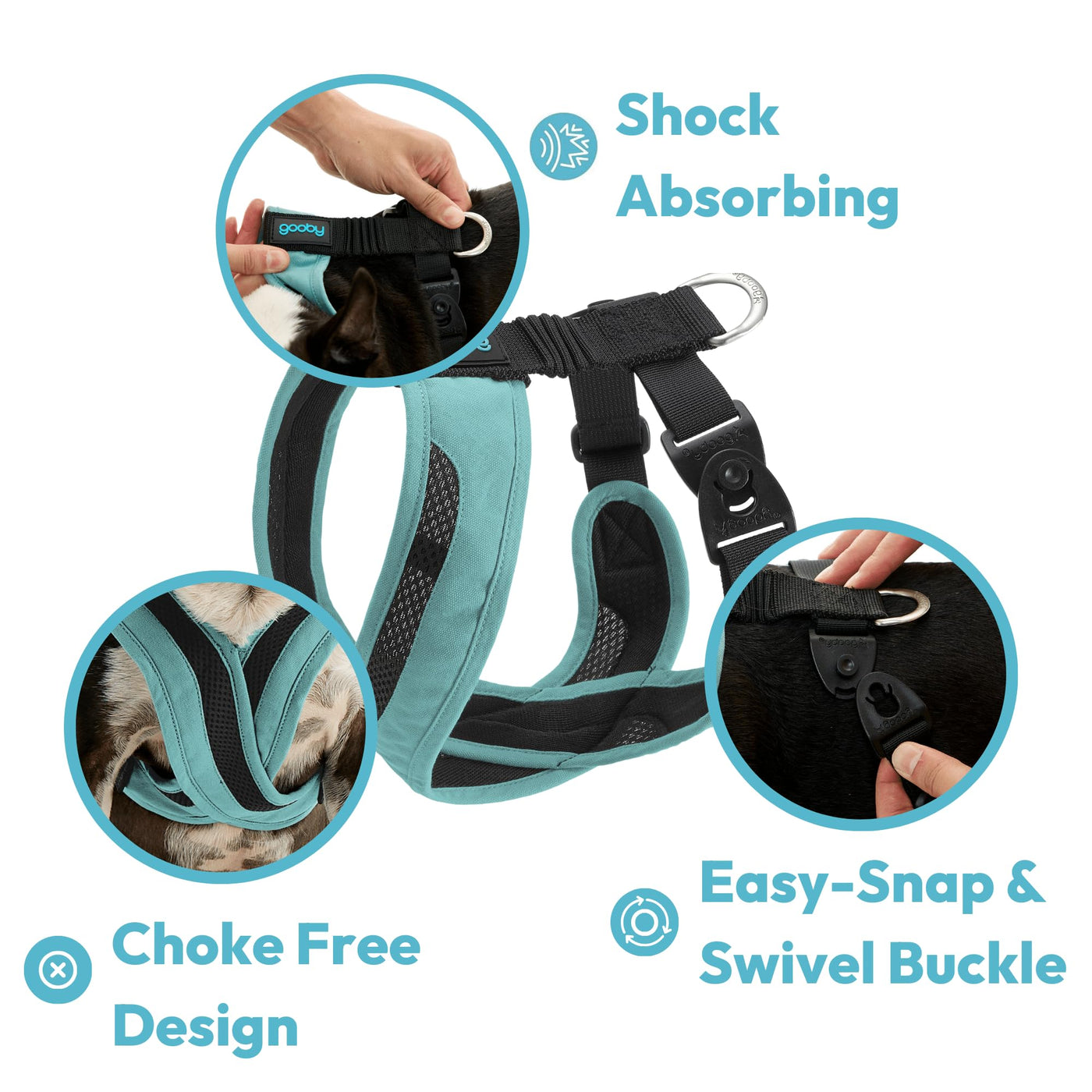 Q: What materials are used in the Gooby Comfort X One Dog Harness?A: The harness is made from breathable polyester mesh, providing comfort and ventilation while ensuring a secure fit for your dog.
