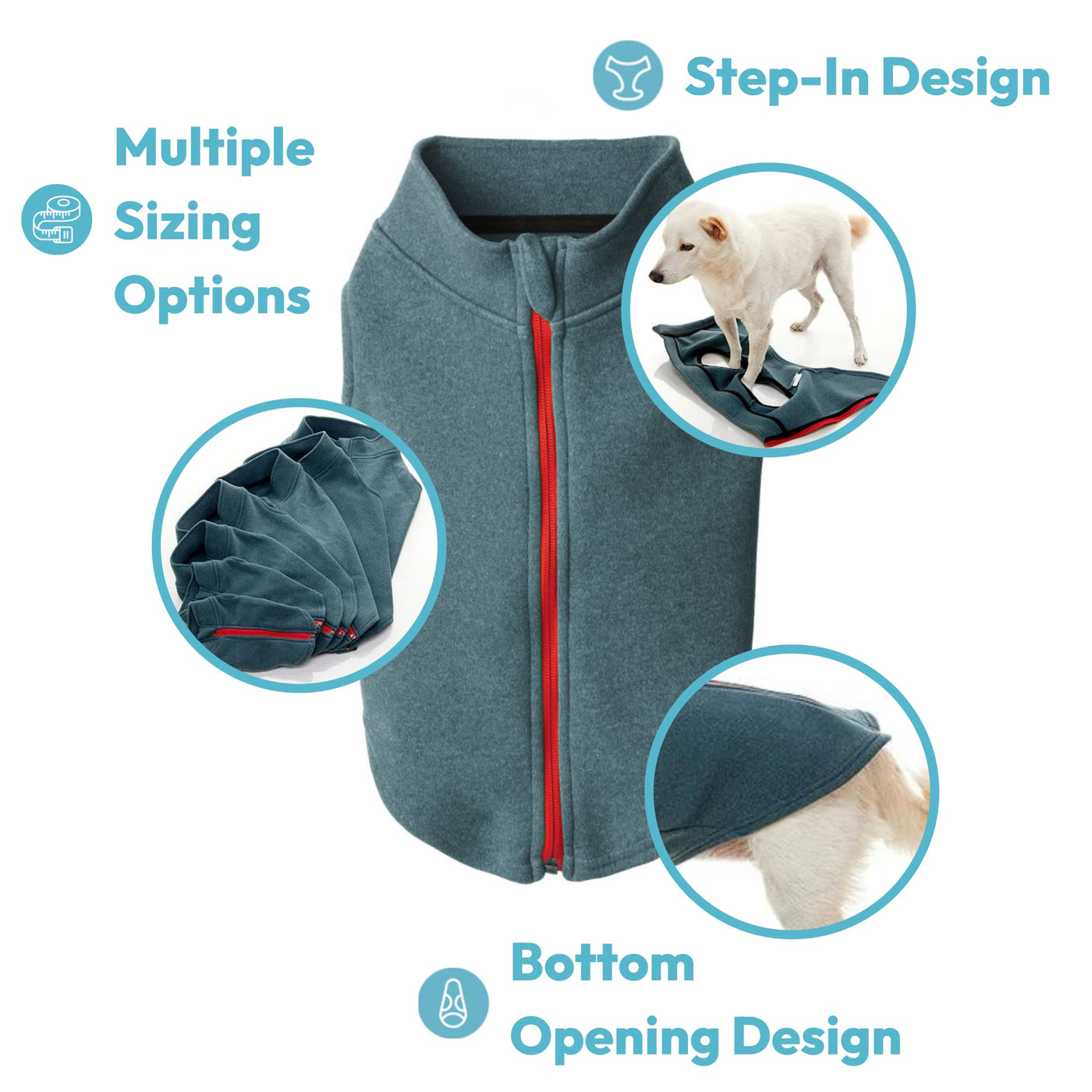 Why Zip Up Microfiber Fleece Everyone has that one sweater they always wear when the weather gets chilly Apparel within our fleece collection is designed to be just that but for your dog The Zip Up Microfiber Fleece Vest and its sister product the Zip Up Fleece Vest are in many ways alike but not without some key differences How it differs Double Layered Microfiber Extremely soft to touch great next to the skin Double Layered - breathable and provides more warmth for colder climates Multiple Sizing Options - seven sizes from X-Small to 3X-Large Fits medium sized dogs up to 50 lbs Stretch fit - gives flexibility and ensures a perfect fit Double Layered Microfiber Extra durability warmth and comfort in colder climates Super smooth and soft to touch Wrinkle-resistant Premium Zippers Top quality zippers from YKK that dont break For those that dont know YKK has been the undisputed leader in manufacturing zippers for more than eight decades Zipper Fur-guard Avoids your pets hair from getting caught in the zipper a painful experience that no pets should go through Bottom Opening Design Large bottom openings so it doesnt get in the way during potty time Step-In Design Step-in Zip-Up and off you go Easy to put on and perfect for overly excited dogs or pets sensitive to pullover appar