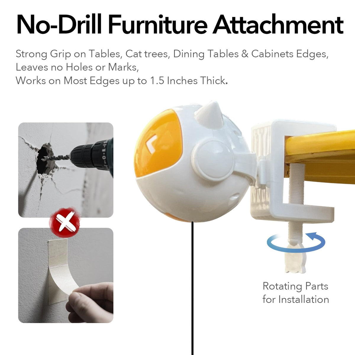 Meet The Automatic Rising And Falling Interactive Cat Toy, The Ultimate Automatic Cat Toys Designed To Keep Your Feline Friends Entertained And Engaged! This Innovative Cat Toy Features An Unpredictable Motion That Mimics The Erratic Movements Of Prey, Enticing Your Cat To Unleash Their Natural Hunting Instincts. Perfect Cat Interactive Toys For Indoor Cats, This Indoor Cat Toy Is Suitable For Both Adult Cats And Playful Kittens, Providing Endless Hours Of Fun. Installation Is A Breeze With Our No-Drill Design. You Can Easily Secure The Teaser Best Cat Toy To A Variety Of Surfaces Without The Hassle Of Drilling Holes. Whether It'S On Your Desk, The Edge Of A Cat Tree, A Dining Table, Or A Cabinet, Setup Is Quick And Simple, Allowing You To Create An Interactive Play Environment For Your Pet In No Time. The Automatic Timer Function Adds Convenience To Playtime. With Just A Single Press Of The Button, The Toy Activates For 5 Minutes Of Active Play Before Automatically Pausing. This Feature Not Only Saves Battery Life But Also Allows Your Cat To Have Bursts Of Play Followed By Rest Periods, Promoting A Healthy Balance. The Fluffy Design Of The Moving Cat Toys For Indoor Cats Is Specifically Crafted To Entice Your Cat, Stimulating Their Natural Instincts To Hunt And Play. Watch As They Leap, Pounce, And Swat At The Automated Cat Toy, Providing Them With Physical Exercise That Is Both Fun And Beneficial. Built To Last, This Cat Toy Automatic Features A Long, Durable Waxed String That Is Resistant To Scratching And Biting, Ensuring That It Can Withstand Even The Most Enthusiastic Play Sessions. We Also Provide Tools For Easy Battery Replacement, Making Maintenance Hassle-Free. Give Your Cat The Gift Of Excitement And Stimulation With The Automatic Rising And Falling Self Play Cat Toys -Where Play Meets Instinctual Behavior!