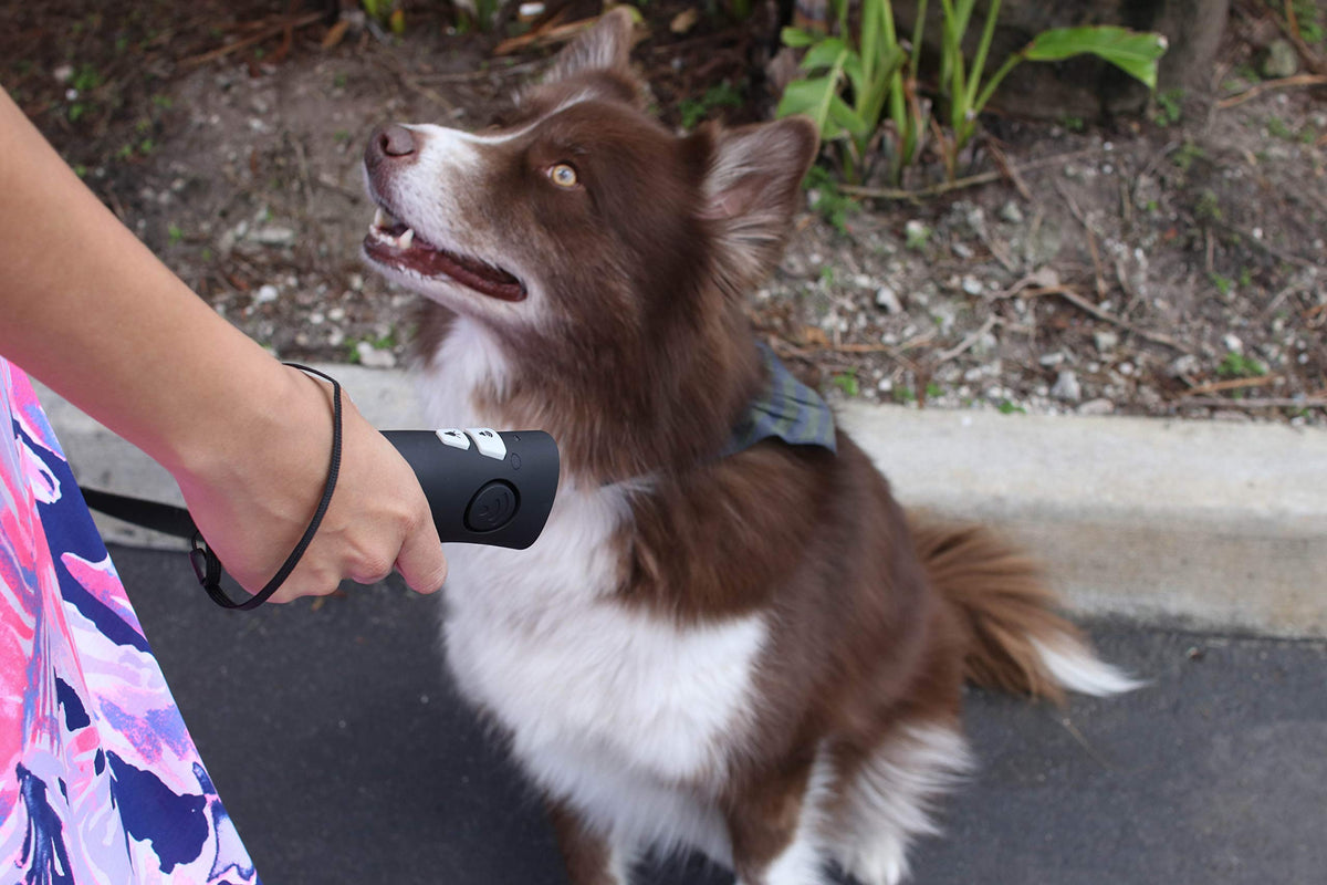 Q: How does the OnGuard Ultrasonic Dog Training Device work?A: The OnGuard Ultrasonic Dog Training Device works by emitting a high-pitched sound that only dogs can hear when you press the button. This sound distracts your dog from unwanted behaviors like barking or jumping, helping them learn to correct their actions without any harm.