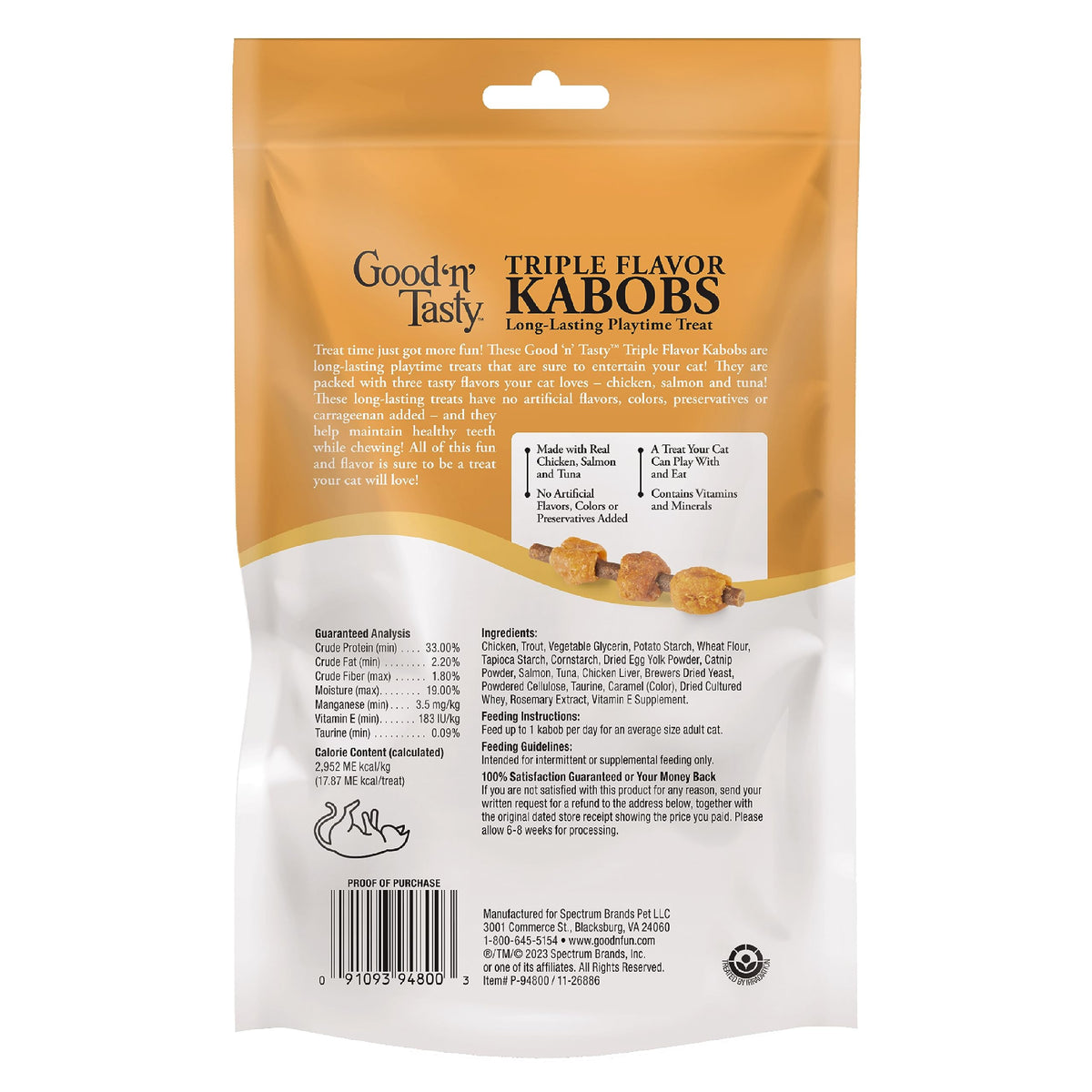 Good n Tasty Triple Flavor Kabobs Cat Treat, 3 Ounce, Long-Lasting Playtime Treat for Cats Made with Real Chicken, Salmon & Tuna