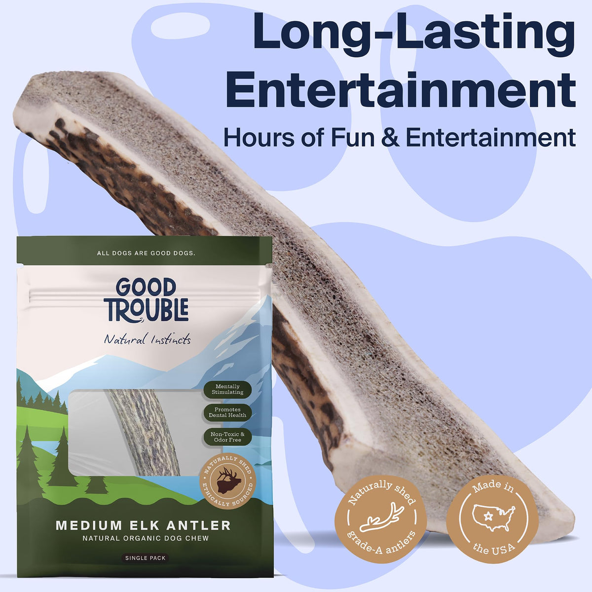 Elevate Your Pet'S Playtime With Good Trouble Pets Premium Elk Antlers, The Ultimate All-Natural Solution For Dog Chew Toys. Sourced From Naturally Shed North American Elk Antlers, These Natural Dog Chews Provide A Guilt-Free And Sustainable Way To Keep Your Medium-Sized Dogs Entertained And Healthier. Uniquely Designed To Address Your Pet'S Natural Chewing Instincts, These Elk Antlers For Dogs Also Promote Dental Health By Removing Plaque And Tartar, Making Them An Ideal Choice For Those In Search Of Effective Dog Dental Bones. These Durable Dog Chew Treats Are Particularly Beneficial For Aggressive Chewers, With Split Elk Antlers Offering A Softer And More Accessible Option, While Whole Antlers Present A More Challenging, Long-Lasting Dog Chew Experience. More Than Just A Toy, These Premium Dog Chew Bones Work As Effective Anxiety Relief For Dogs, Providing A Natural Outlet For Stress And Boredom. Unlike Traditional Dog Chew Antlers, Good Trouble Pets Premium Elk Antlers Ensure Your Furry Friend'S Entertainment Is Both Engaging And Cruelty-Free, Thanks To Their Environmentally-Friendly Sourcing. With Good Trouble Pets Premium Elk Antlers, You Not Only Give Your Pet An Indestructible Dog Toy But Also Contribute To Their Overall Well-Being. As A Versatile Addition To Any Dog Owner'S Must-Haves, These Antlers Are The Perfect Blend Of Functionality And Enjoyment, Offering Wholesome Natural Dog Bones For Your Four-Legged Friend. Experience Peace Of Mind While Keeping Your Pet'S Needs And The Planet'S Health In Check With These Eco-Conscious, Natural Dog Treats.