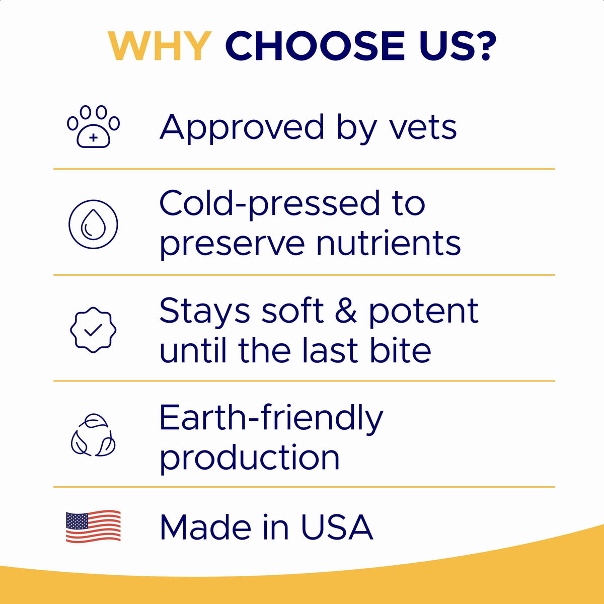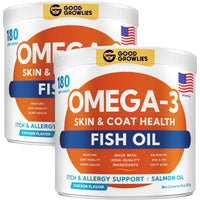 Keep your pet allergy-free and help maintain healthy shiny coat with Omega Treats. These chewables are effective skin and coat supplements, packed with Salmon Oil sourced Omega-3-6-0 fatty acids, that together with other elements, work to provide most comprehensive itch and allergy relief treatment on the market. These treats contain daily dose of essential element needed to support soft and shine coat, reduce shedding, eliminate dry itchy skin, hotspots and other skin conditions. What is Omega for dogs? Omega is a group of polyunsaturated essential fatty acids. If your chemistry is a bit rusty, weve broken it down for you. Fatty acids: they are building blocks for good general health. They store energy, help body absorb certain vitamins and play a huge role in how the body functions as a whole. Essential: this is a short way of saying that your dogs body cant produce the fatty acids on its own. They must be taken from food or supplements Polyunsaturated: this part means that Omega is a healthy type of fat. Youve probably heard of good fats and bad fats. This is the good one, that you want to make sure your dog doesnt run low on. Suitable for dogs of all breeds, large and small, all ages. For puppies, omega will help support their underdeveloped immune systems, improve cognitive functions, memory and learning ability, while for adult and senior dogs omega will support healthy skin and coat while improving mobility, easing inflammations and help with wound healing. Chews are easy to serve, as most pets consider it to be a treat, unlike pills, tablets or powder that you need to cover up or sneak into dogs food.