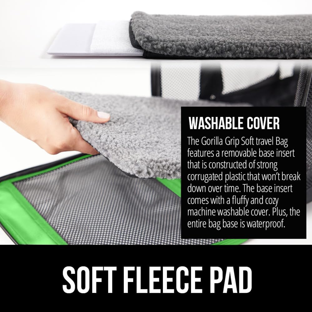 Q: How do I clean the GORILLA GRIP pet carrier?A: The carrier features a washable fleece pad insert that is removable and machine washable. For the carrier itself, you can wipe down the exterior and interior with a damp cloth for easy cleaning.