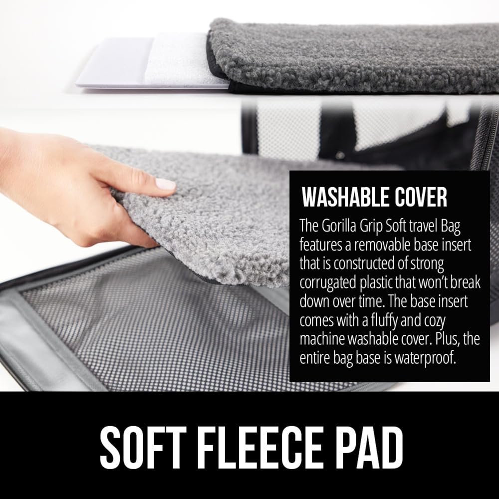DURABLE CARRIER WITH TWO OPENINGS AND SIDE POCKET The Gorilla Grip Pet Carrier is a durable, yet lightweight travel bag designed for convenient traveling with pets. It features 2 openings for easy entry and exit, one at the top and one at the side. The sturdy structured frame helps bag keep it shape.