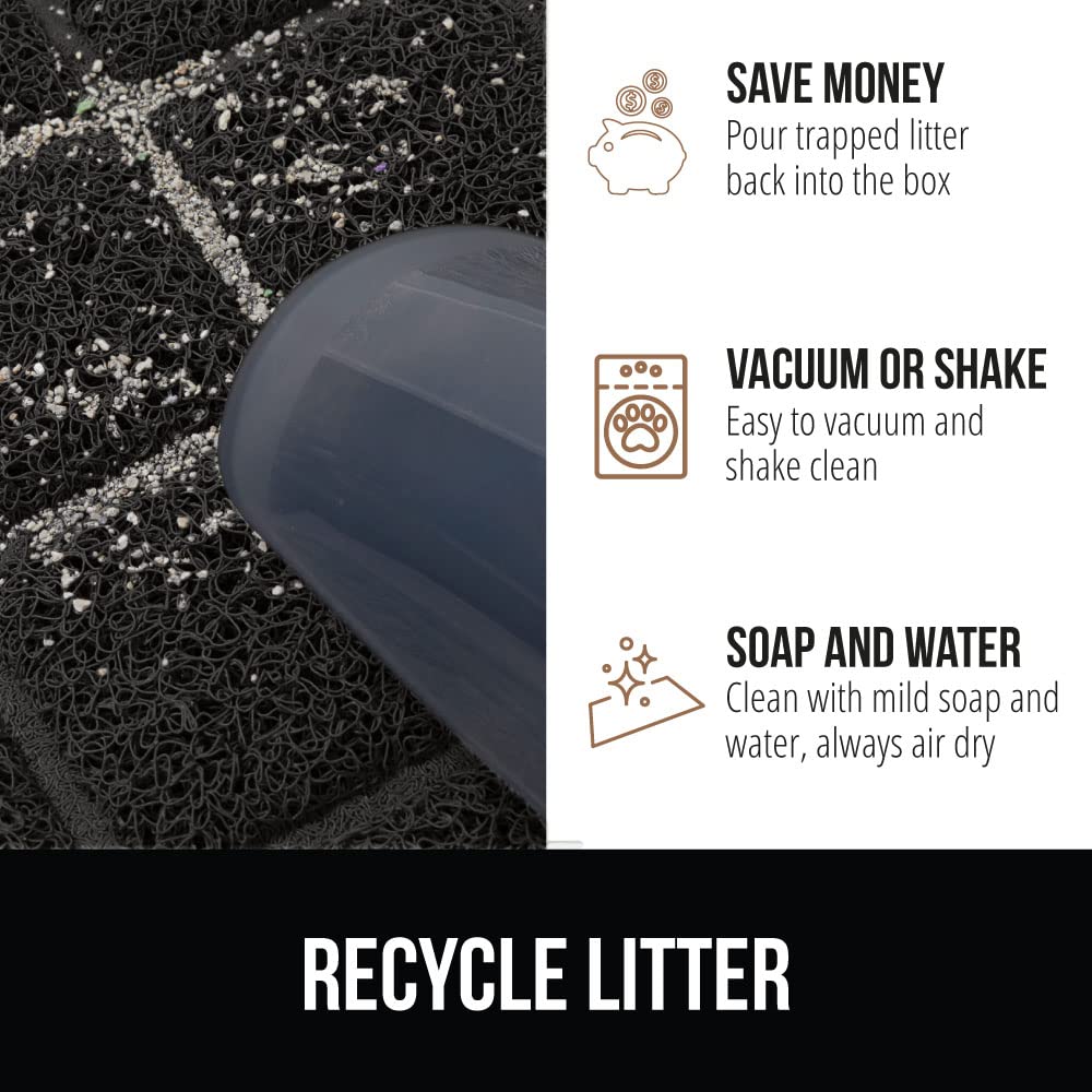 Q: Can this mat help reduce litter waste?A: Absolutely! The Gorilla Grip Cat Litter Mat is designed to help you recycle more litter. You can easily tip and pour collected litter back into the box, saving you money and reducing waste, while excess litter can be vacuumed or shaken out.