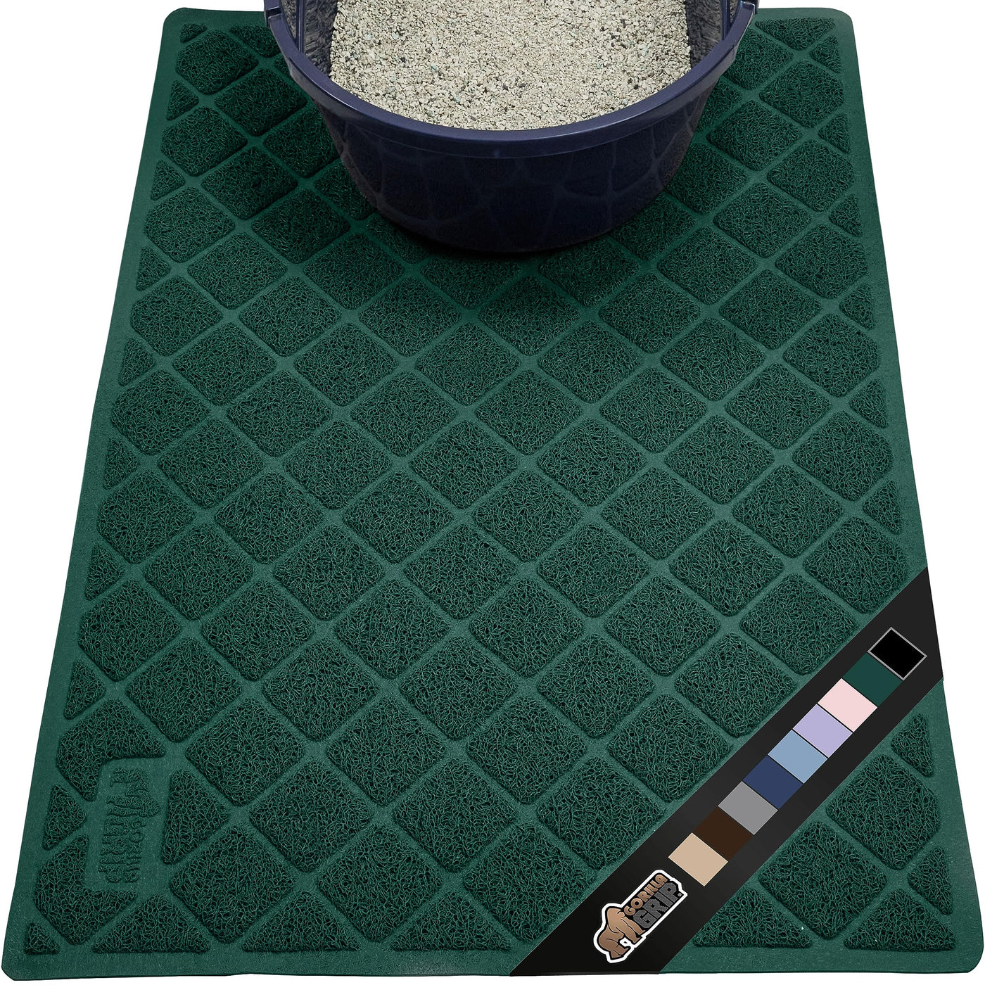 Gorilla Grip Thick Cat Litter Trapping Mat, 47X35, Less Waste, Traps Mess From Box For Cleaner Floors, Stays In Place For Cats, Soft On Paws, Easy Clean, Jumbo Size, Durable Backing, Hunter Green