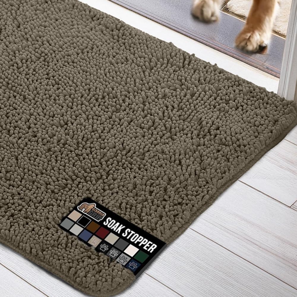 Gorilla Grip Ultra Absorbent Grippy Doormat for Muddy Dog Paws, Machine Washable Soak Stopper Rugs Cleaner Floors, Bed Mat for D