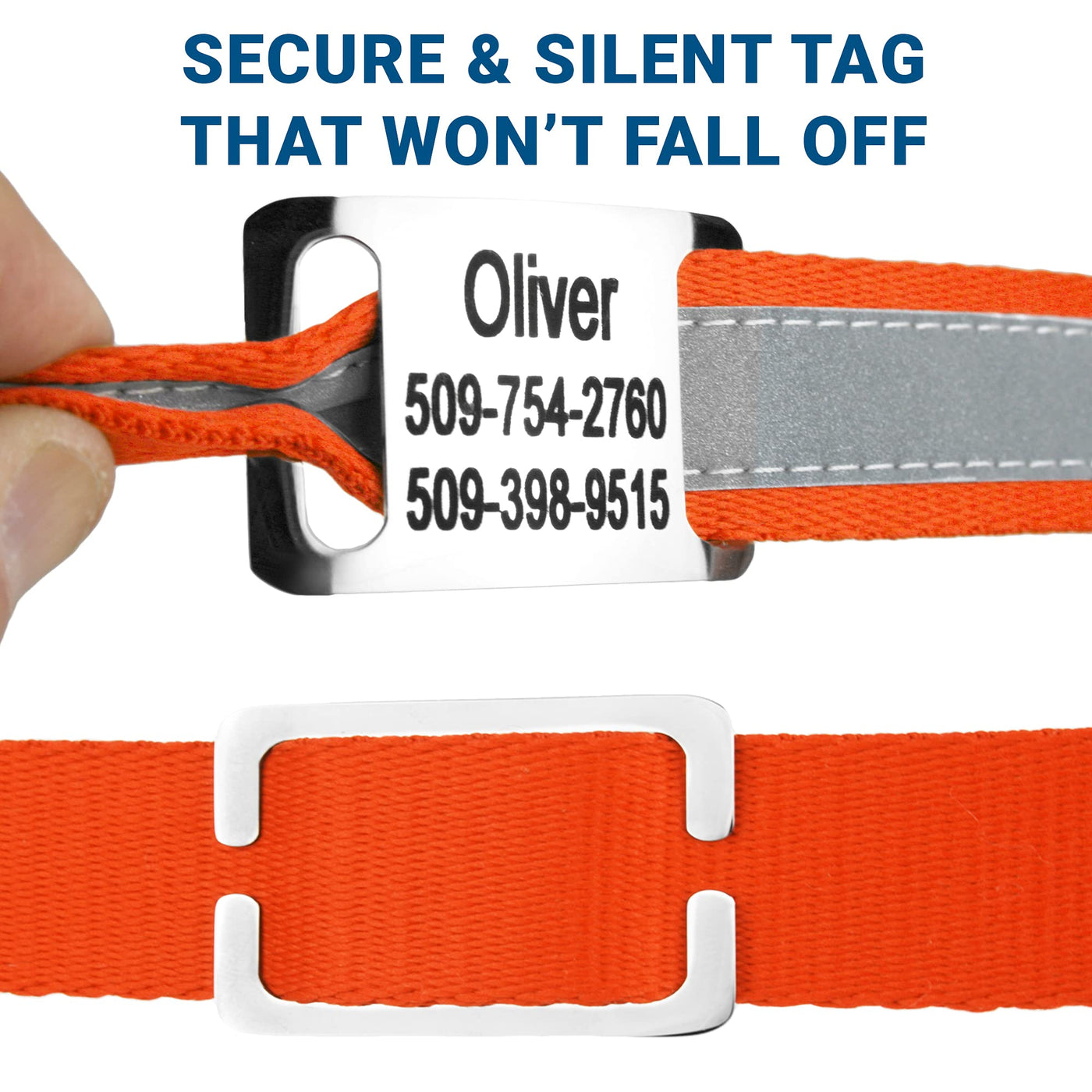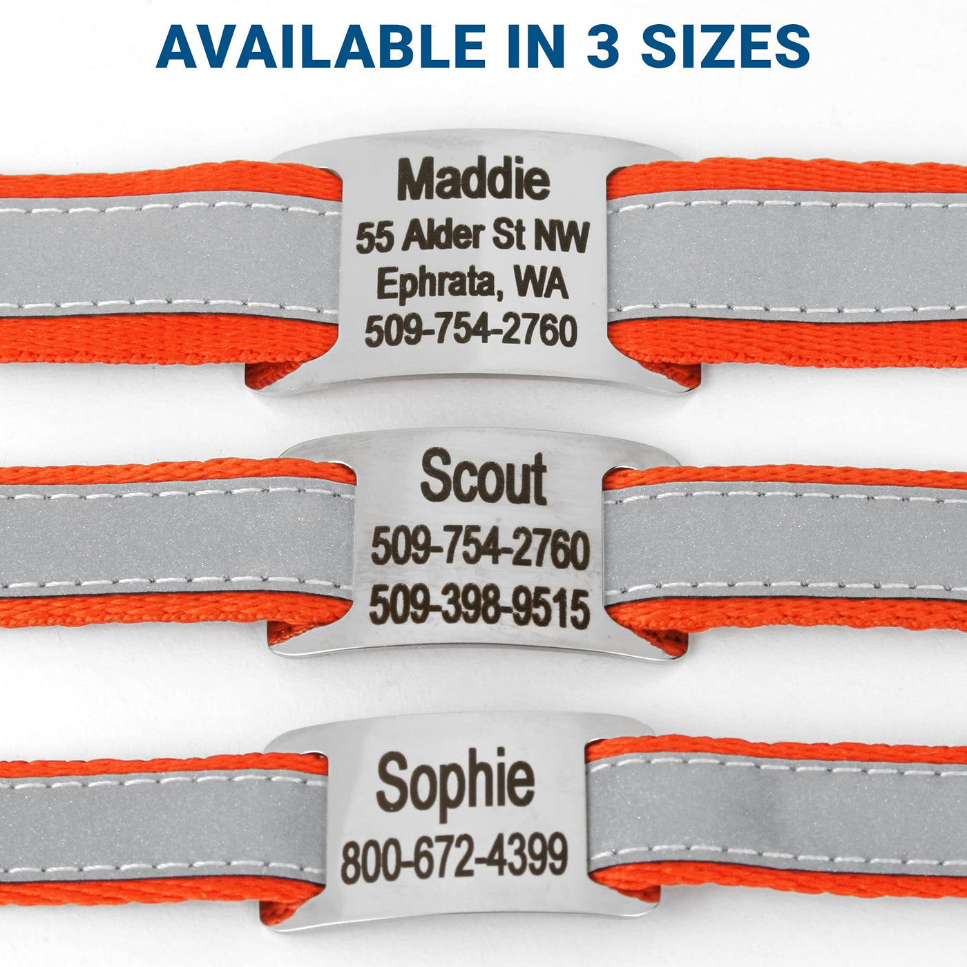 Gotags Reflective Personalized Dog Collar With Nameplate, Adjustable Dog Collar With Custom Engraved Steel Slide On Pet Id Tag,