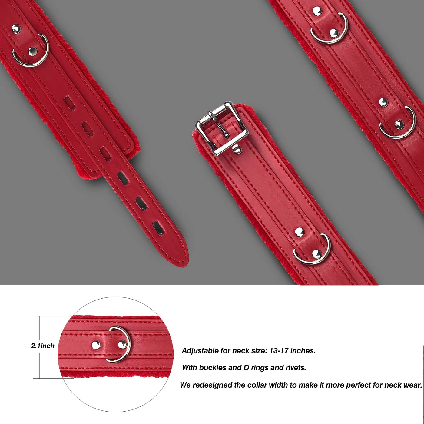 Gothic Leather Choker Collar, Pu Leather Fur Lined Pet Collars Necklace With Long And Durable Detachable Leash Chain Pet Collars