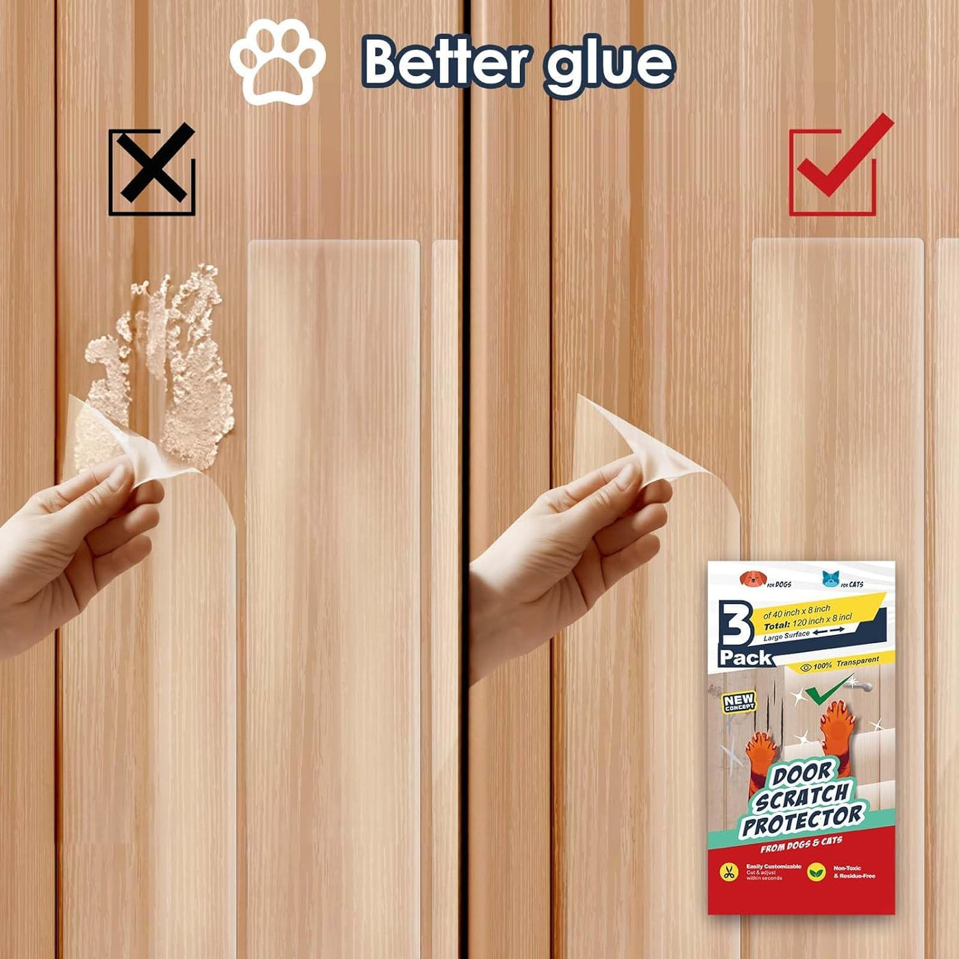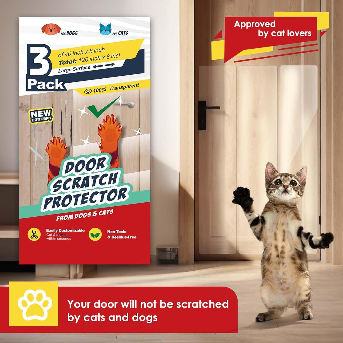 Shield Your Doors & Surfaces Door Protectors - Your Ultimate Solution To Prevent Dog And Cat Scratching. These Specially Designed Sheets Offer Practical And Effective Protection For Pet Owners Dealing With Door And Surface Damage. Convenient 3-Pack Each Purchase Includes A Handy 3-Pack Of Rolls, With Each Roll Measuring 40 Inches Long And 8.2 Inches Wide. Designed To Fit Standard Door Requirements, They Can Also Be Applied To Window Sills, Windows, And Door Frames For Versatile Safeguarding. Transparent & Residue-Free Our 100% Clear And Transparent Sheets Leave No Residue When Correctly Removed. Enjoy Peace Of Mind Knowing Your Doors And Surfaces Are Protected Without Any Unwanted Marks Or Mess. Easy Application & Versatility Applying Our Door Protector Sheets Is A Breeze, Providing Hassle-Free Protection Against Scratching. To Ensure Compatibility With Your Door Or Surface Material, We Recommend Conducting A Quick Test Before Application.