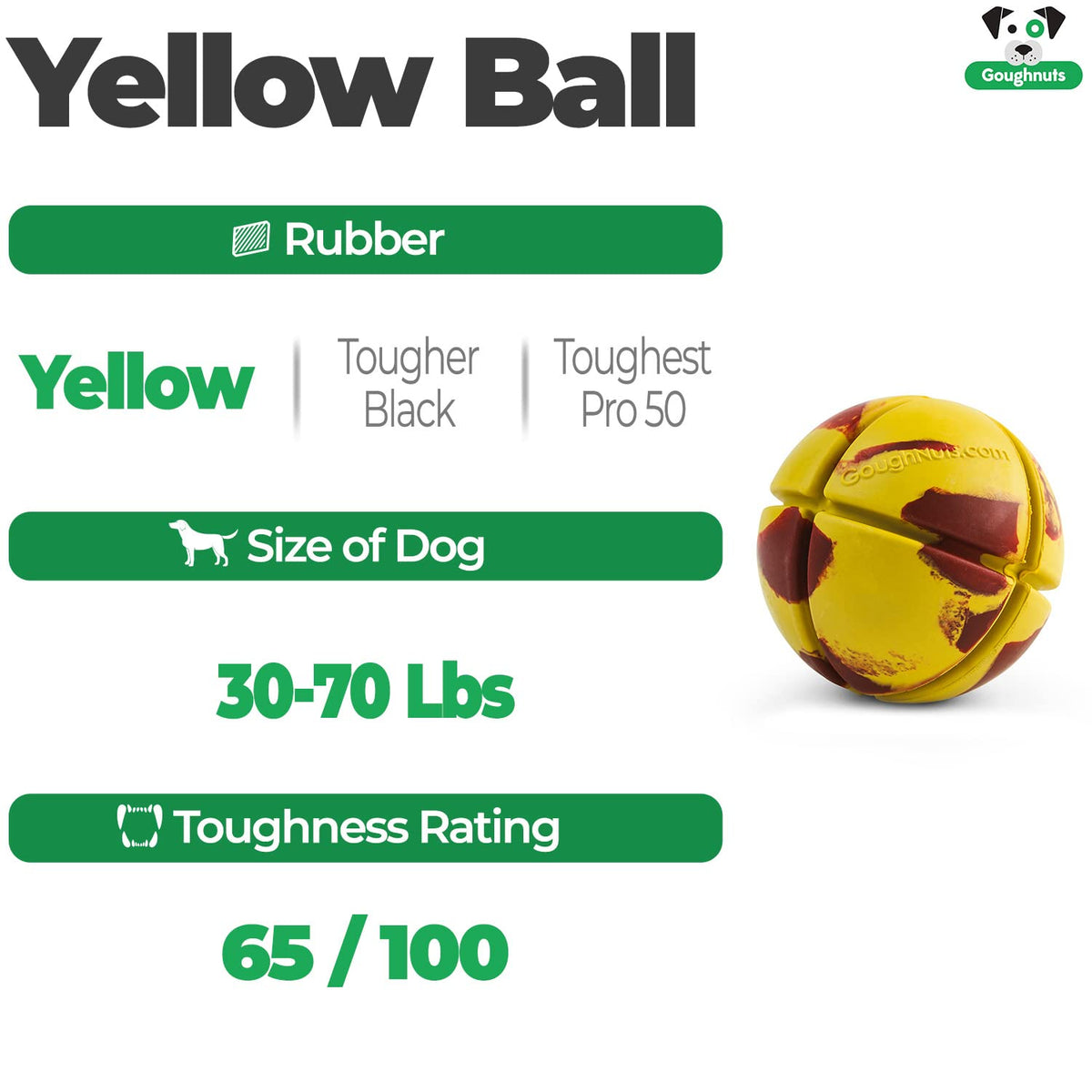 Goughnuts - Virtually Indestructible Ball - Guaranteed Dog Chew Toys For Aggressive Chewers Like Pit Bulls, German Shepherds, And Labs From 30-70 Pounds - Tough And Durable Natural Rubber - Yellow