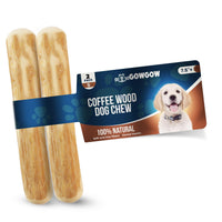 Gowgow Coffee Wood Dog Chew Stick For Small Dogs, 7.5'', 2 Pack Size S - 100% Natural Chew Toys - Teeth Cleaning, Stress Relief,