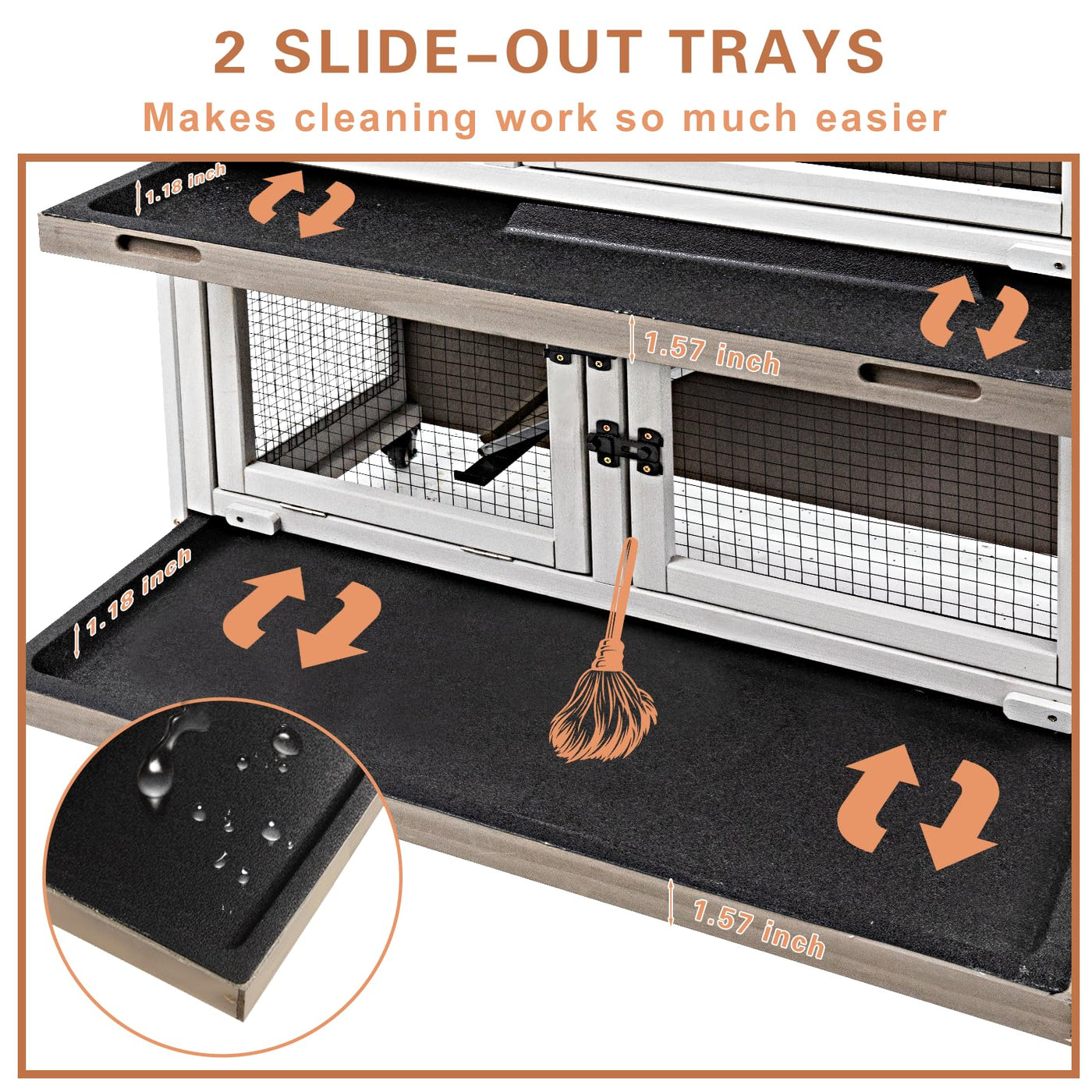 Gowoodhut 36' L Rabbit Hutch Indoor Wooden 2 Story Bunny Hutch Rabbit Cage Outdoor Bunny Cage On 4 Metal Wheels And 2 Deeper Pu