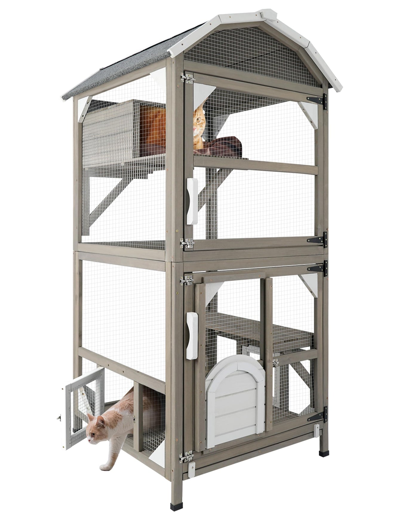 Gowoodhut 71'' Large Cat House Outdoor Catio Enclosures Indoor Kitten Cages With Attachable Window Resting Box,Waterproof Roof