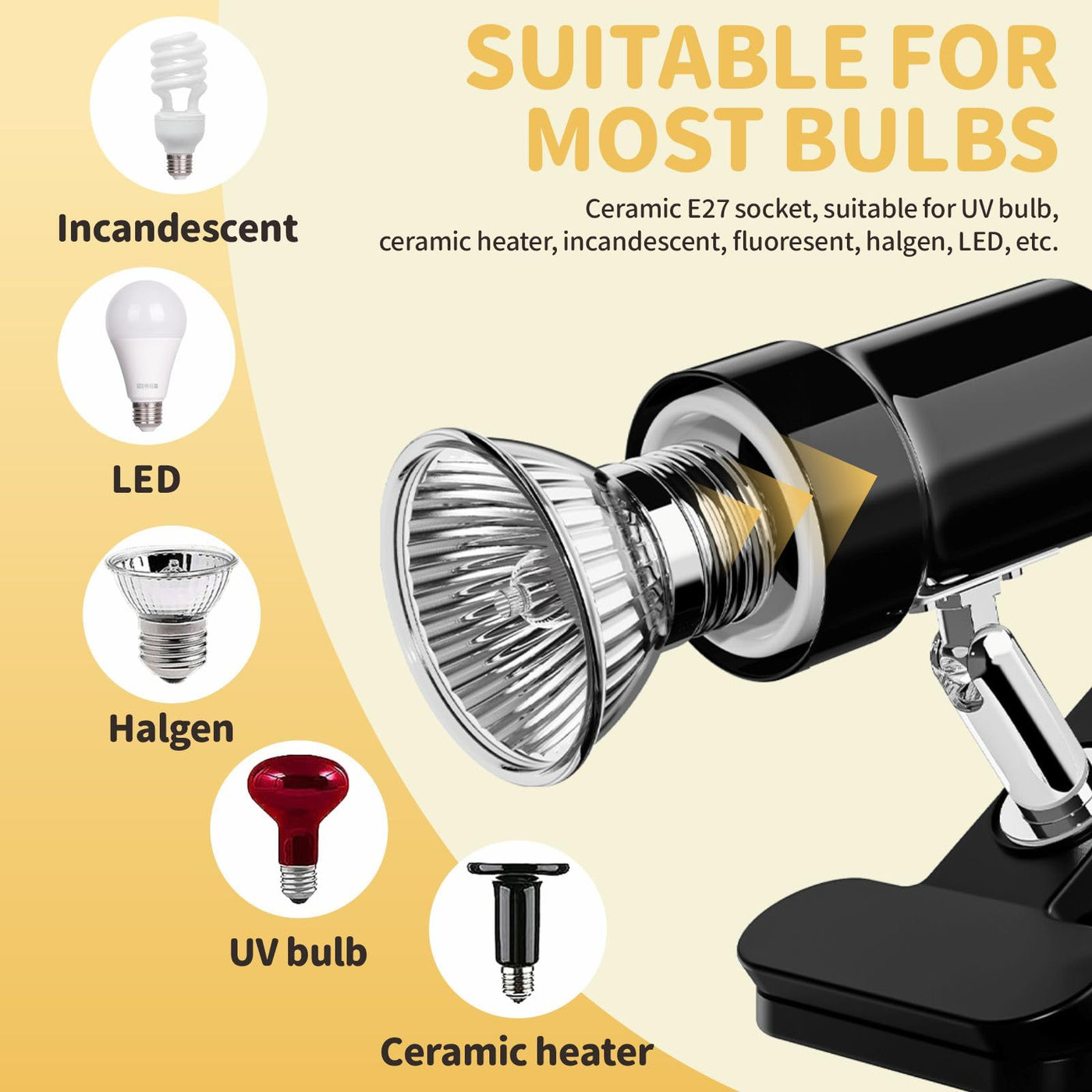 Gozilla Reptile Heat Lamp, Turtle Lamp With 50W Uva/Uvb Turtle Light Bulb, 360Rotatable Clip Reptile Basking Light For Amphibian