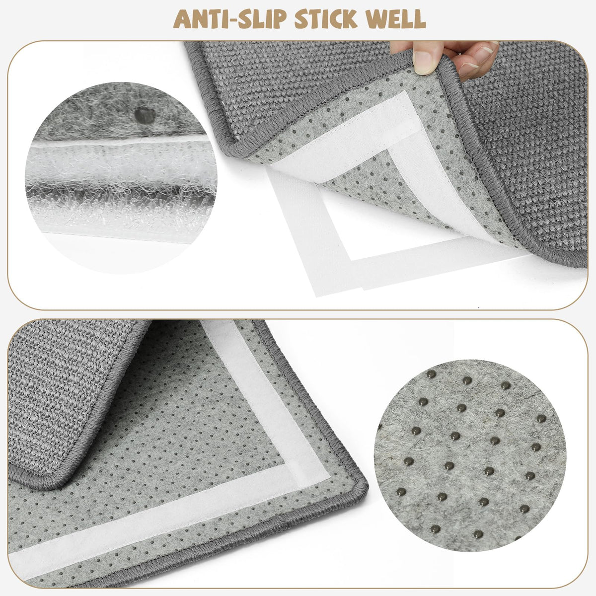 Q: How does the anti-slide design work for this scratching pad?A: The scratching mat features four Hook Loop tapes that secure it firmly in place, preventing it from sliding around while your cat scratches, ensuring a stable and enjoyable experience.