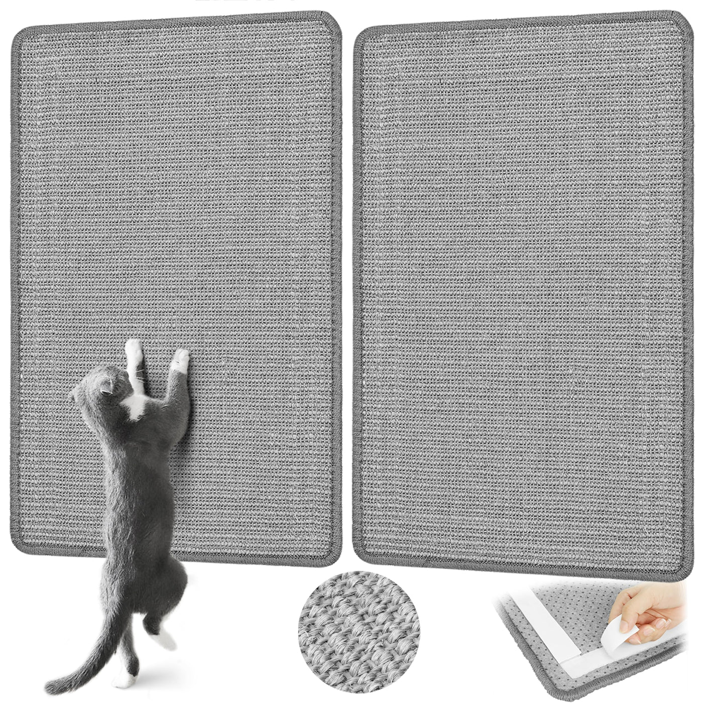 Graciadeco Grey Cat Scratching Mat Sisal 2 Packs Sisal Fabric Large Cat Scratching Pad For Indoor Cats With Adhesive Hook Loop Tape Wall Scratchers For Indoor Cats 23.6'' X 15.7''