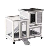 Graessa Rabbit Hutch, Indoor Rabbit Cage Two Story Bunny Hutch With Wheels Guinea Pig Cages With Removable No Leaking Tray, Ramp