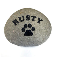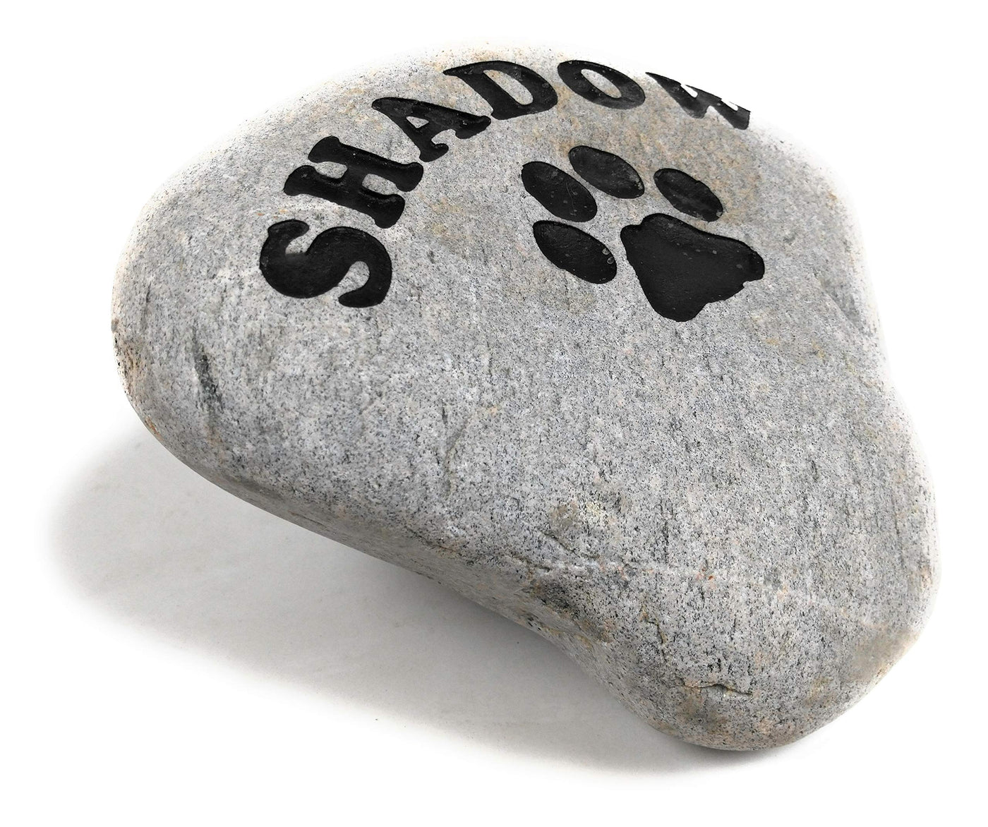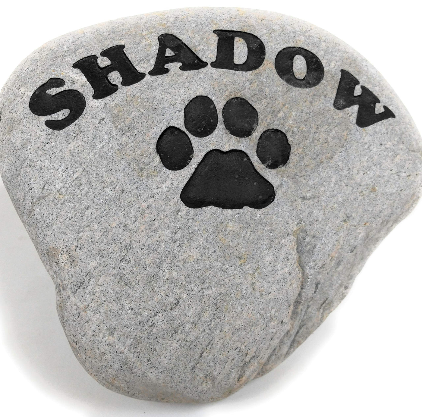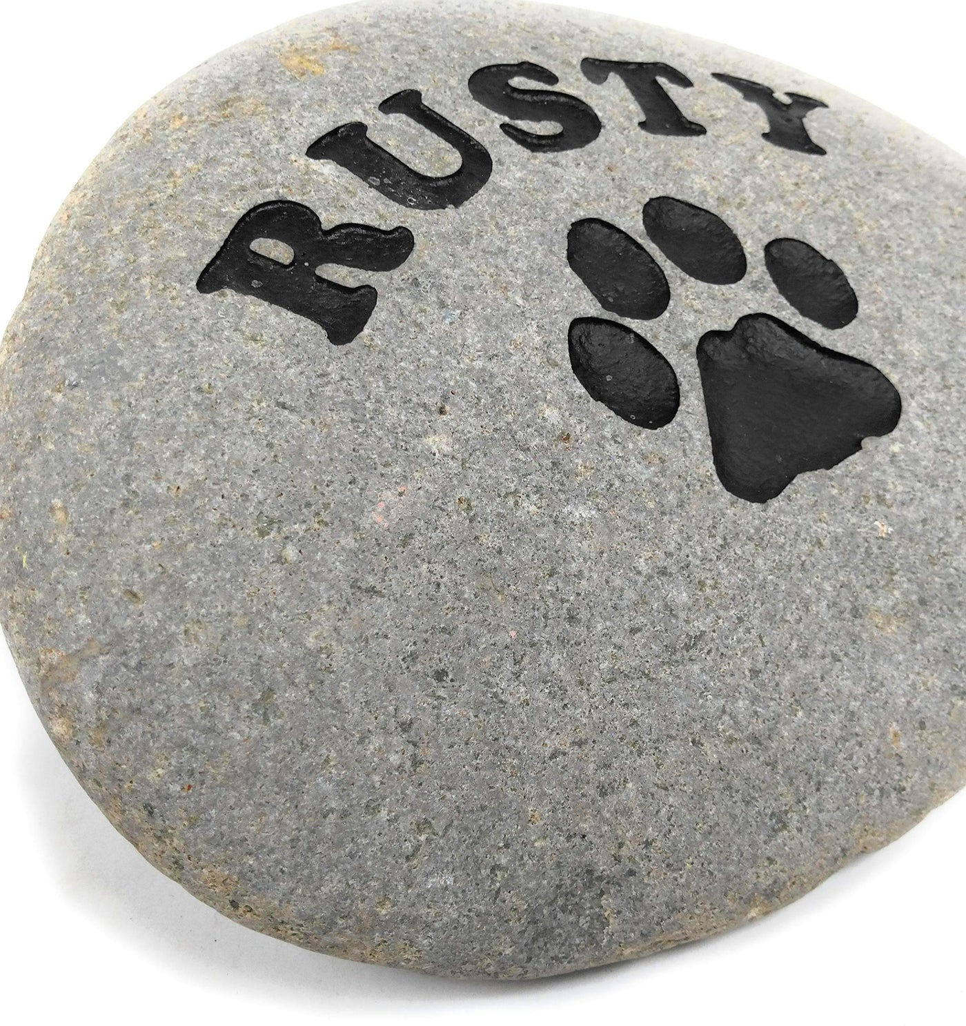 Engraved River Rock Pet Memorial , Grave Marker. This Memorial Stone Is Approx 8 Inches To 10 Inches. Perfect For The Indoor Garden Or Outdoor Garden Engraved With Your Pets Name And A Paw Print . This River Rock Is A Real Stones , Not Resin Or Fake.