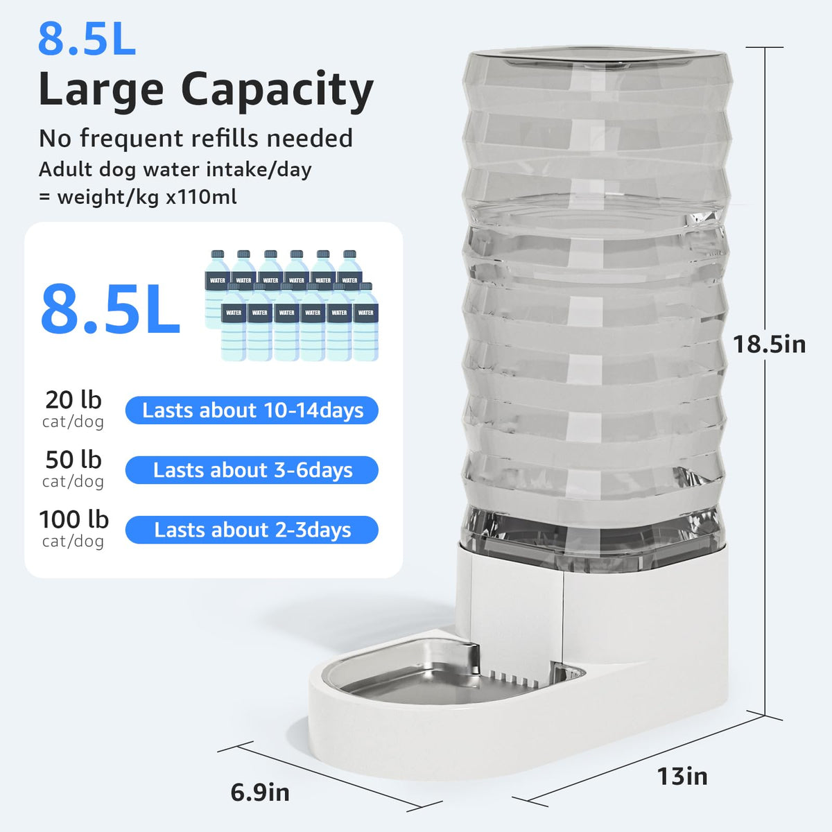 Gravity 8.5L Dog And Cat Water Bowl Dispenser, Automatic Stainless Steel Dog Water Bowl, 100% Bpa-Free, Self-Filling Large Capac