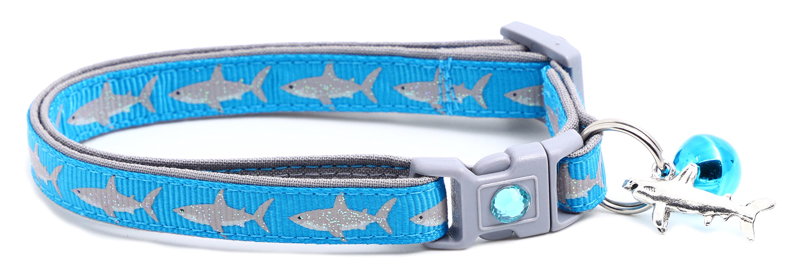 Great White Shark Cat Collar - Safety - Breakaway - Charm And Bell - Pugs2Persians (Large(10Lbs & Up), Blue)