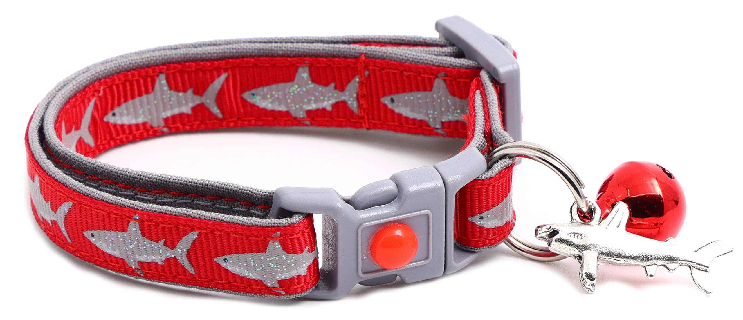 Great White Shark Cat Collar - Safety - Breakaway - Charm And Bell - Pugs2Persians (Small(10Lbs & Less), Red)