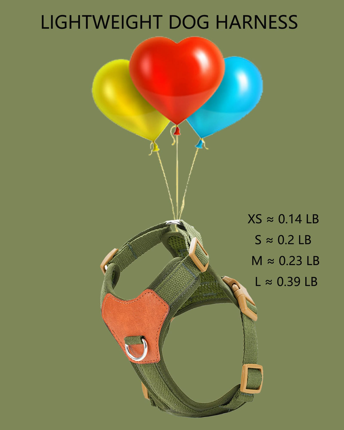 Xs Dog Harness:Neck Range: 9.1''-11.4'', Chest Range:11.8''-15.7'' Small Dog Harness:Neck Range: 11''-15'', Chest Range:15.7''-20.5'' Medium Dog Harness:Neck Range: 14.2''-18.1'', Chest Range:19.7''-25.2'' Large Dog Harness:Neck Range: 19.7''-25.6'', Chest Range:25.2''-33.9''