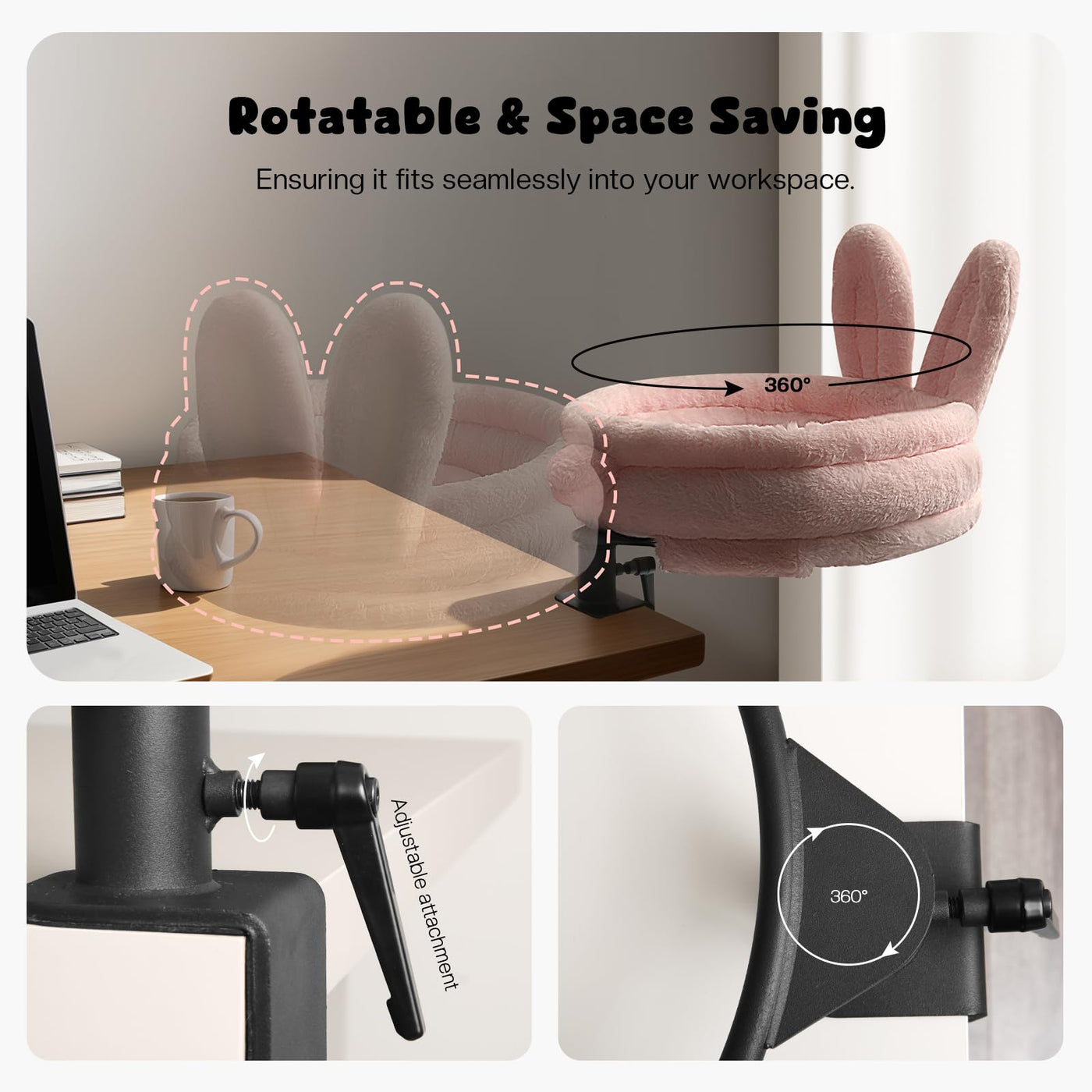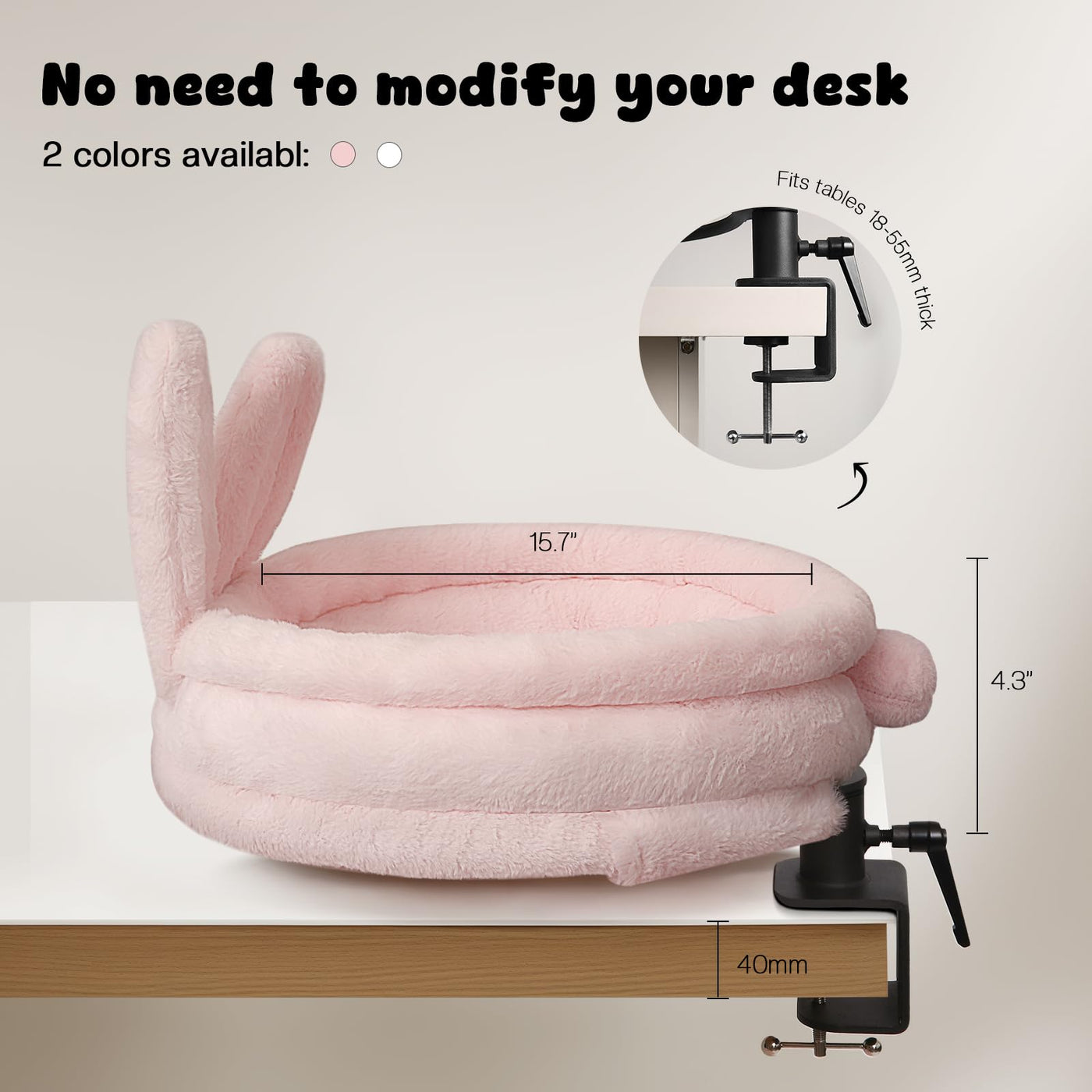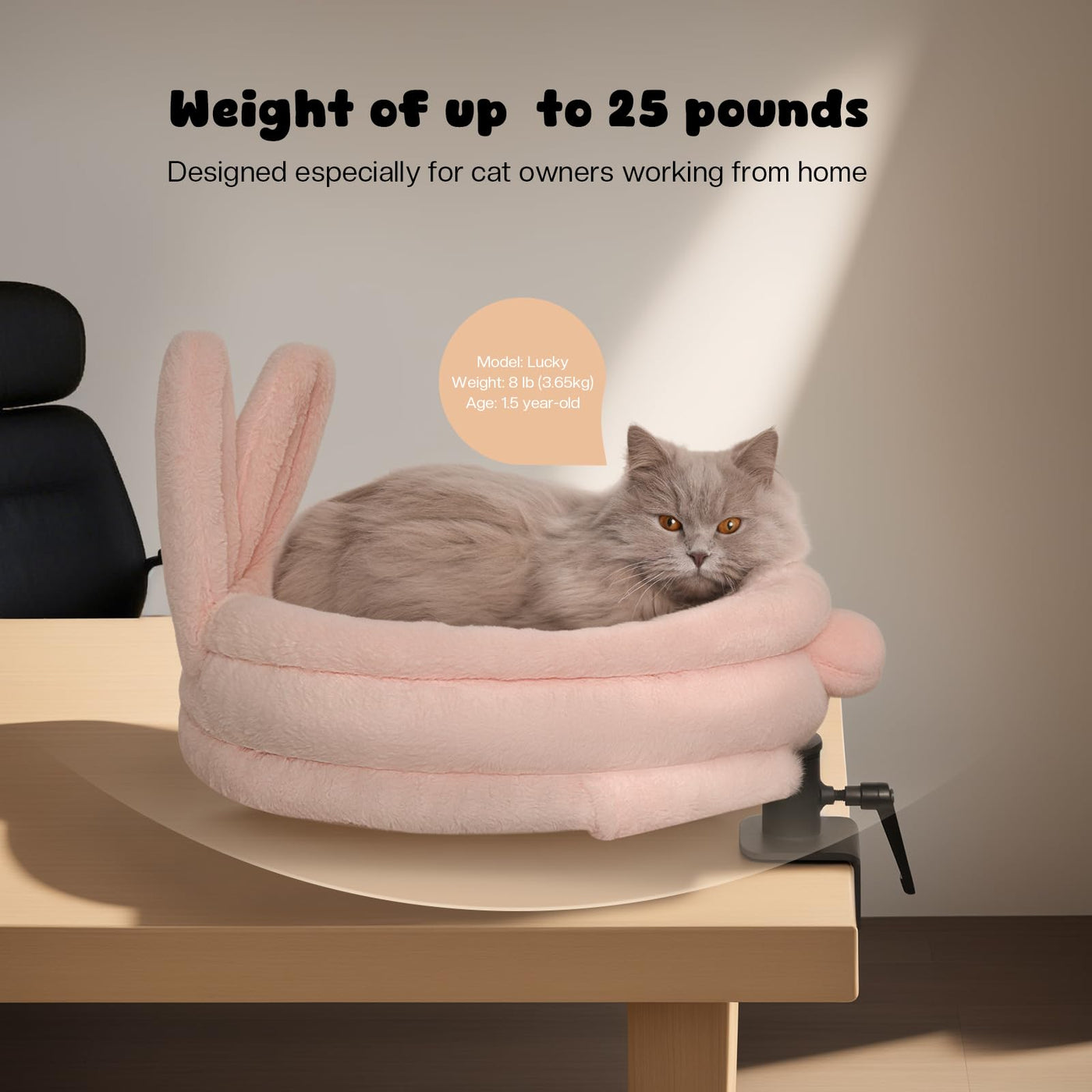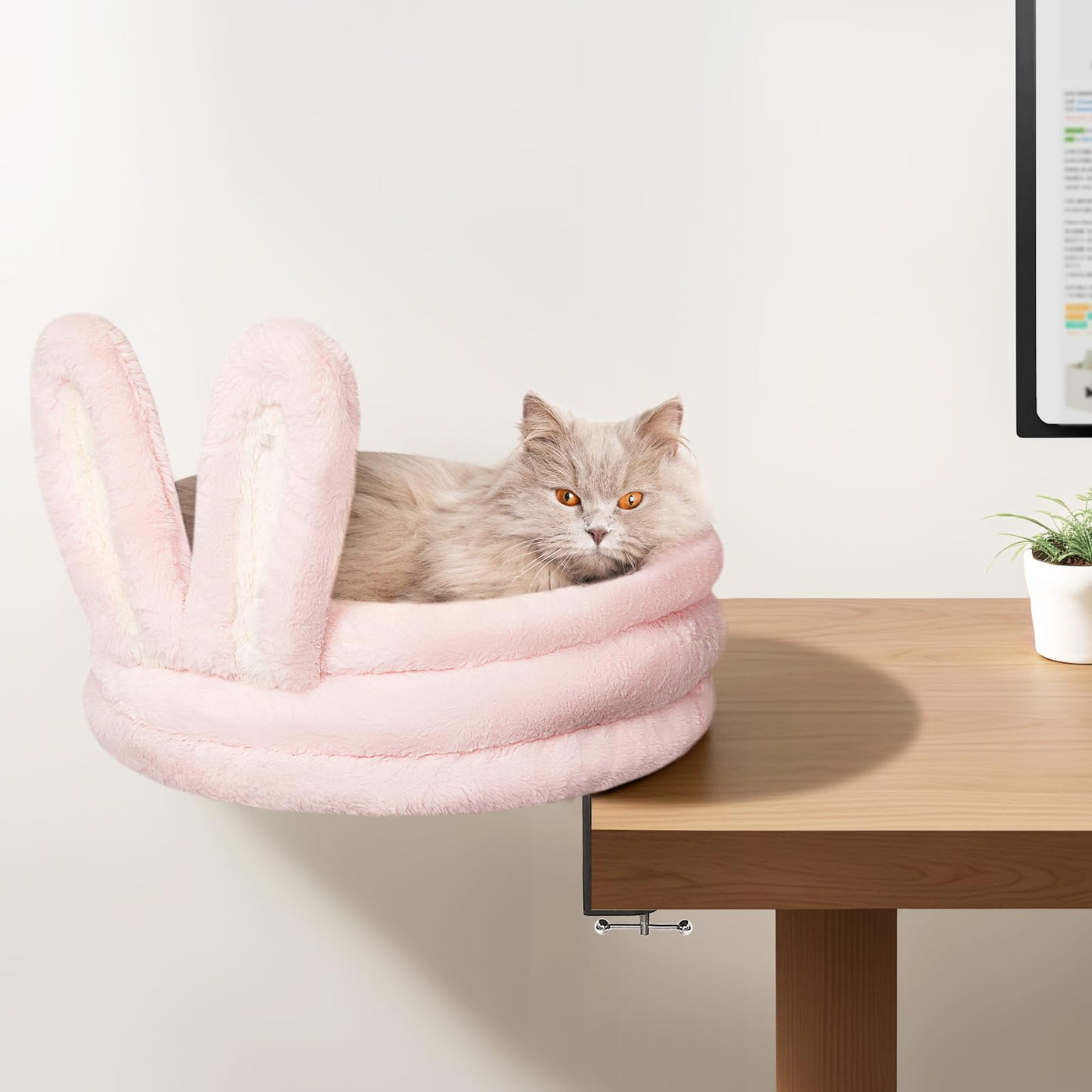 Greenpetopia 360 Rotation Cat Bed For Desk, Cats Desk Bed With Soft Rabbit Ear Cushion, Desk Nest Cat Beds With Metal Frames, Ca