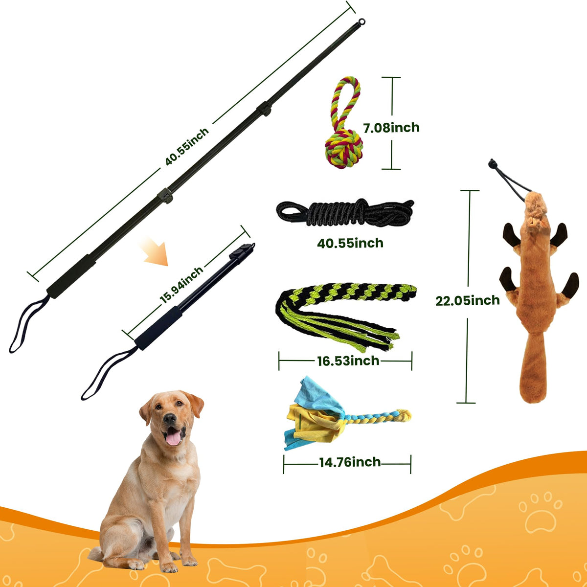 Gretmix Flirt Pole For Dogs, Interactive Dog Toys Extendable Teaser Wand With Lure Chewing Toy, Chase And Tug Of War For Small M