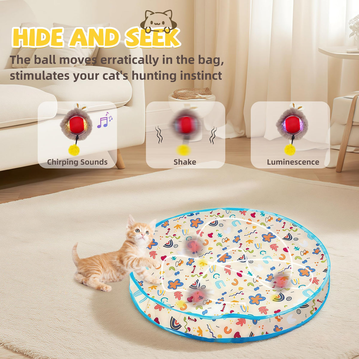 Unleash Your Cats Inner Hunter with the Interactive Chase Toy! Is your cat bored with static toys? Engineered for maximum feline engagement, this innovative toy features a lightweight, fast-spinning ball securely enclosed within a durable pouch. With just a gentle tap, the Interactive Cat Toys Ball zooms unpredictably around the built-in track, mimicking the erratic movements of scurrying prey. It provides hours of pouncing, chasing and swatting fun for your cat! Why Cats Love It: ?? Irresistible Motion: The low-friction ball darts and spins at thrilling speeds inside the pouch, captivating even the most finicky felines. This self-rewarding action keeps cats mentally sharp, physically active, and blissfully entertained - reducing anxiety and destructive boredom behaviors. ?? Paws-Off Play for Busy Pet Parents: The interactive cat toy is perfect for solo play! Your cat can safely bat and hunt independently while you work or relax. No more constant toy-fetching under furniture - the secure pouch keeps the ball contained yet fully interactive. ?? Built Tough for Claws & Enthusiasm: This toy withstands fierce paw swats and enthusiastic play. The double-stitched seams ensure the ball stays securely inside, while the smooth surfaces protect delicate whiskers and paws. ?? Effortless Setup & Cleaning: Simply place it on any floor surface - no assembly needed! The sleek, wipeable surfaces make hygiene a breeze; just clean with a damp cloth to remove hair or dirt. Compact and portable, this cat toys is ideal for travel or small spaces!