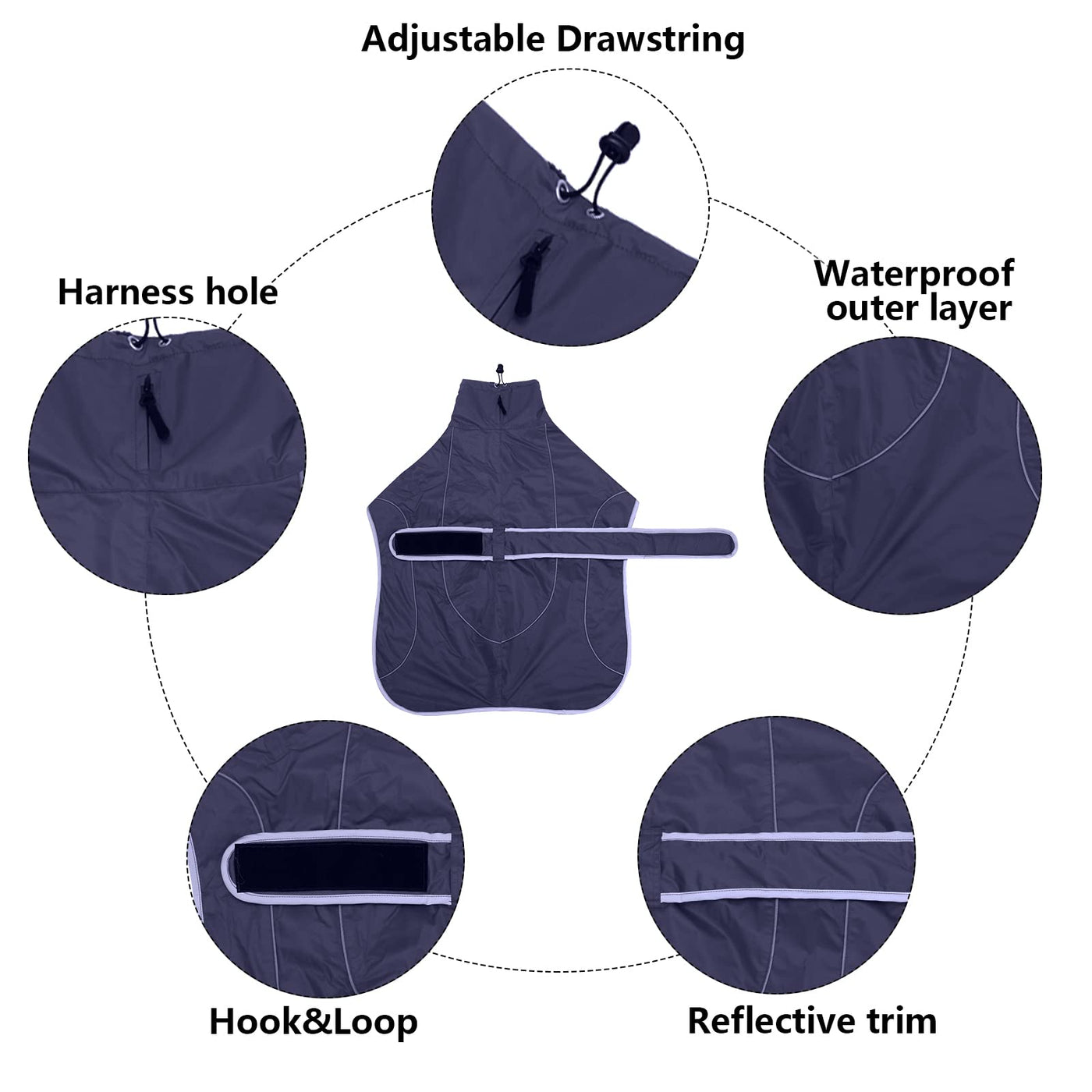 Greyhound Winter Coat, Whippet Coat With Padded Fleece Lining, Water Resistant Dog Jacket With Adjustable Bands And Reflective - Navy - Xsmall