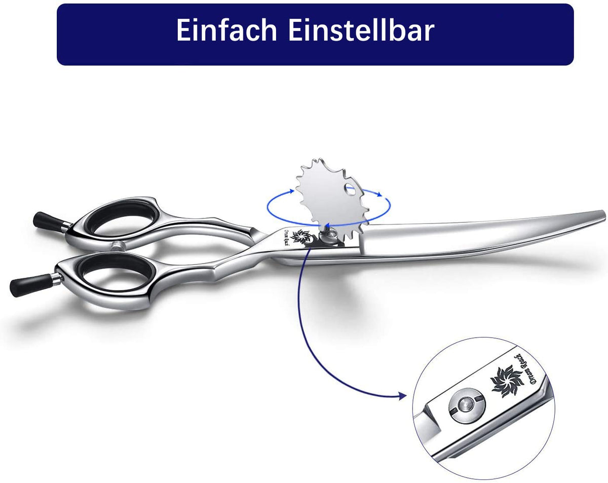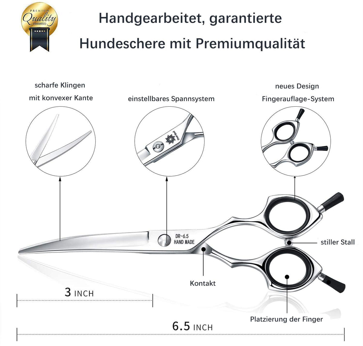 Product Name: Pet Grooming Curved Scissor Brand: Dream Reach Material: Japan 440c Stainless Steel Hardness: 62HRC Size: 6.5 Inches