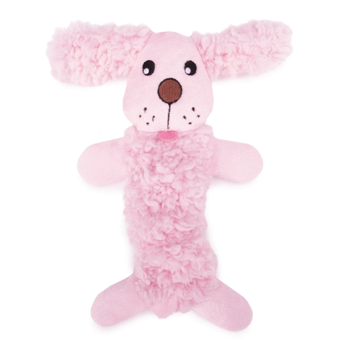 Grriggles Baby Bark Bungee Pup Toys are little toys for little dogs and the perfect gift for 'pet parents' welcoming a puppy into their homes. Grriggles Baby Bark Bungee Pup Toys includes flat and fluffy textures in the softest fleece. • Endearing facial expression is embroidered on• Bungee feature lets toy s-t-r-e-t-c-h, to teach puppies tugging games• A cozy comfy little carry-around toy for newborns and baby dogs• Each measures 12' extended• In traditional 'new baby' colors of pink and blueMaterials: 100% polyester plush, bungee elastic, squeakerSize: Each measures 12' extended
