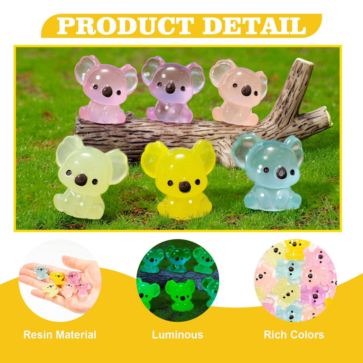 GTUDOR Mini Resin Koala, 24Pcs Luminous Koala Figurines, Glow in The Dark Animal Ornament, Tiny Koalas Statues for Garden Doll R