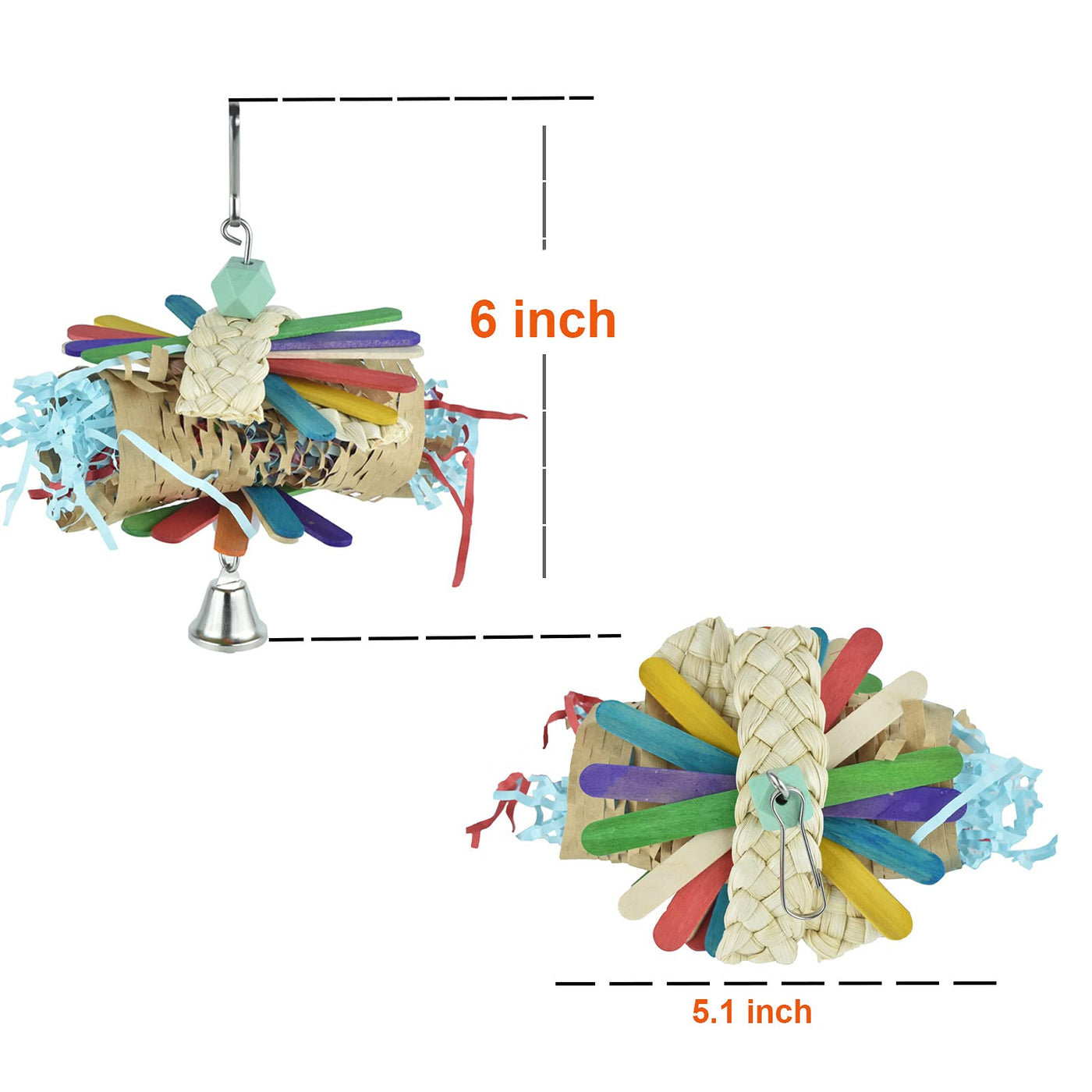 Its important that birds have toys to chew shred and play. These colorful toys can help keep your birds entertained. Good for quaker, sun conures, African greys cockatoo, and other medium large parrots. Great for ducks & chicken too. bird treat basket Destroyed toys for parrots Bird feeder toys for parrots Nosie making toy for parrots Climbing & swing toys for parrots Package: 4 pcs bird toy