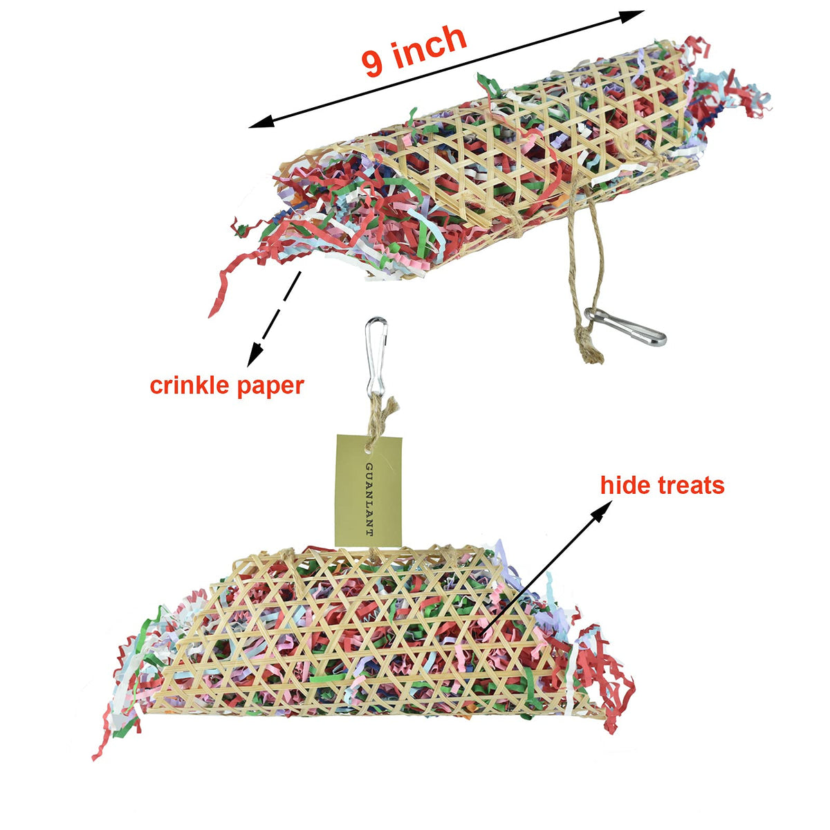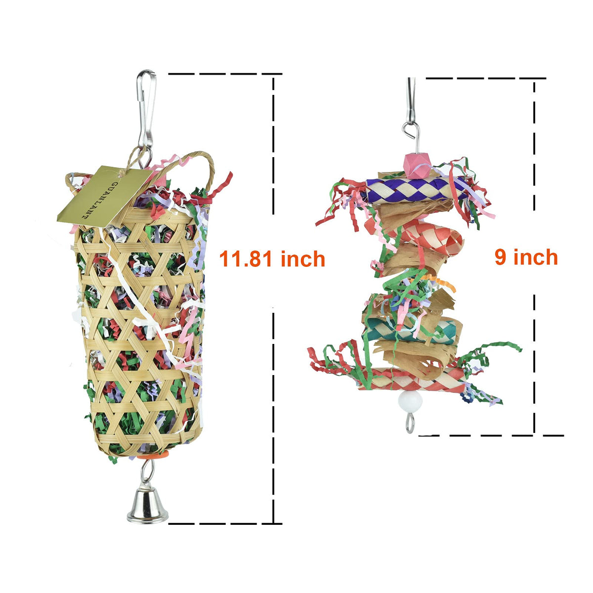 GUANLANT 4 Pack Shredder Foraging Feeder Bird Toys Treat Basket for Parrots, Conure Shredding Chewing Paper Hanging Cage Climbin