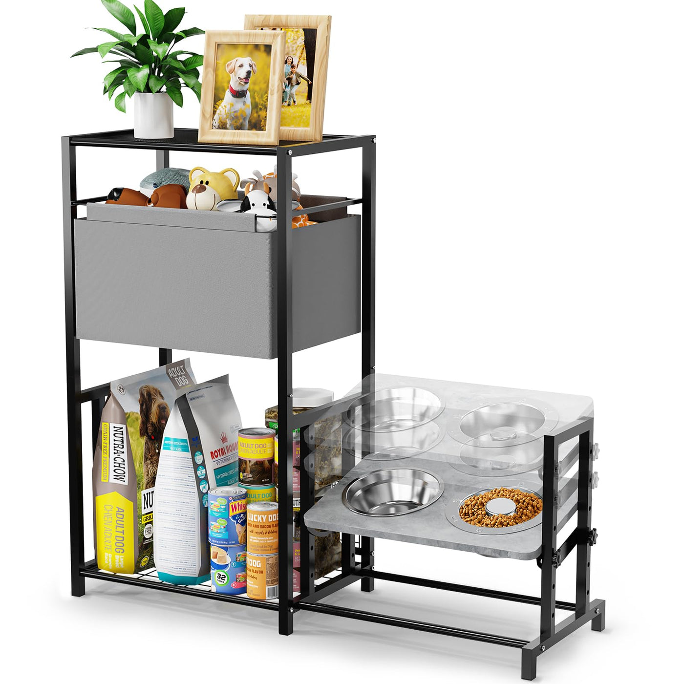 Guibukeyan Elevated Dog Bowls Stand With Pet Storage Organizer, Adjustable Feeding Station Cabinet With Toy Basket For Large, Me