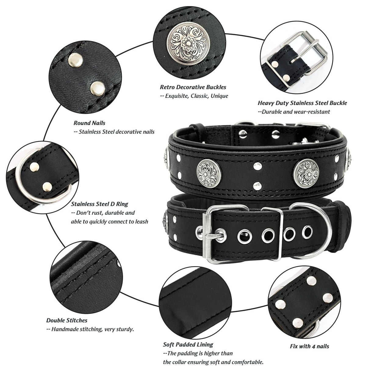 Leather Dog Collar For Large Medium Dogs, Heavy Duty 2 Inches Wide Dog Collars, Thick, Strong, Luxury And Studded Dog Collar, Black Dog Collar (22.5-26.5 )