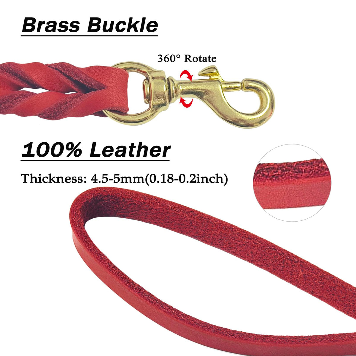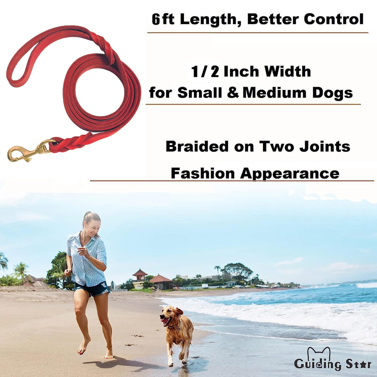 Guiding Star Leather Dog Leash 6 Foot, Dog Leashes for Large Dogs Heavy Duty Strong Braided Dog Training Leash for Large Medium Small Dogs (Red, 6Ft x 1/2'')